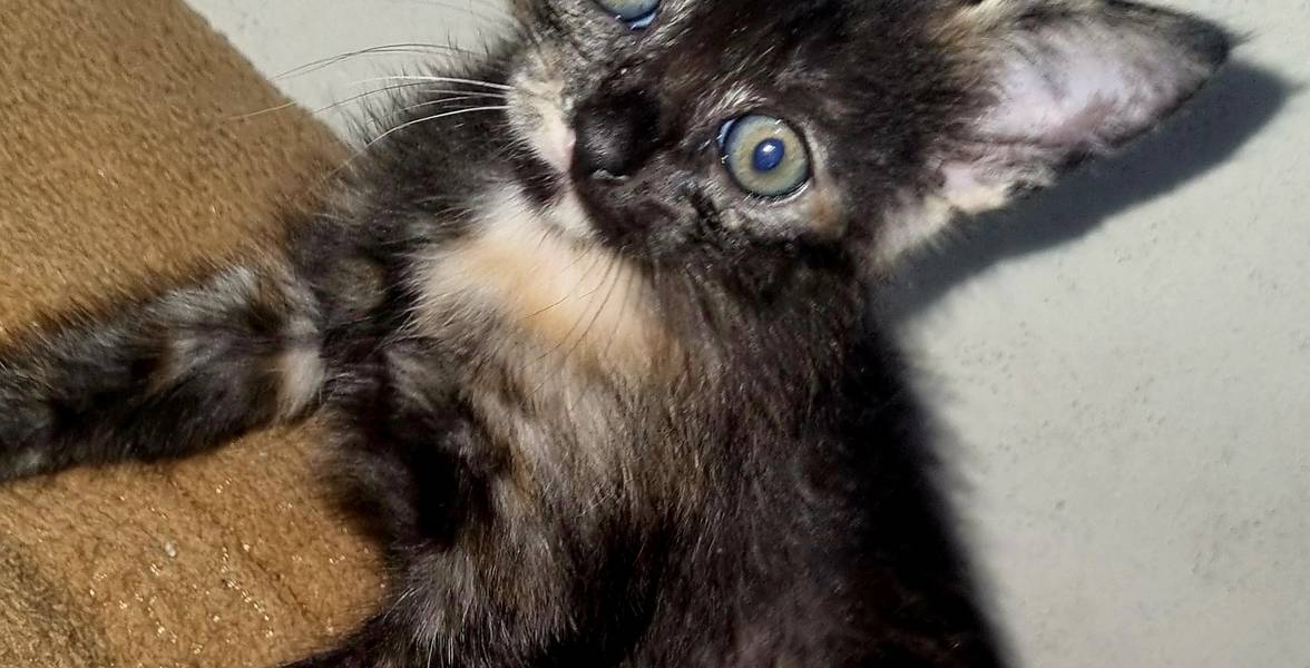 Gata fêmea 40 dias, 3 cores, pelagem grande e macia.