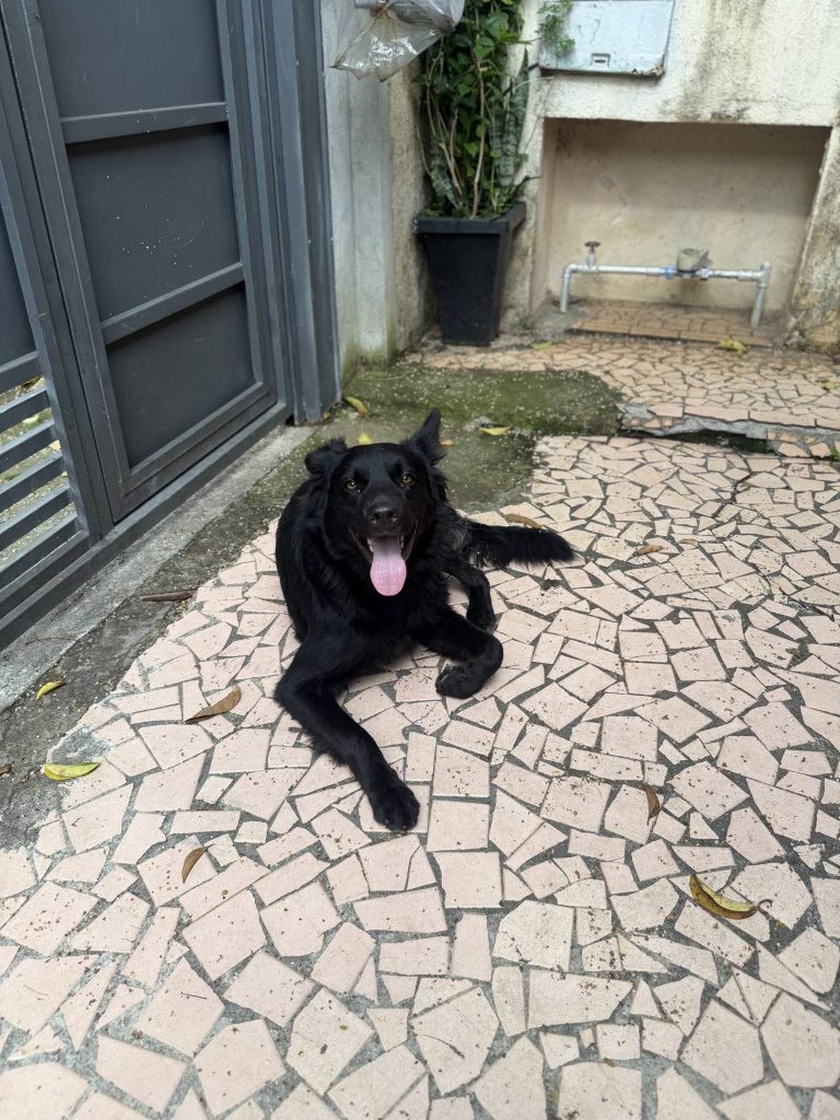Como eu moro em um apartamento pequeno e não tenho estrutura para ficar com ele, levei para a casa da minha madrinha para que ele ficasse seguro. Lá, demos banho, cuidamos dele e percebemos o quanto ele é dócil, carinhoso e tranquilo.