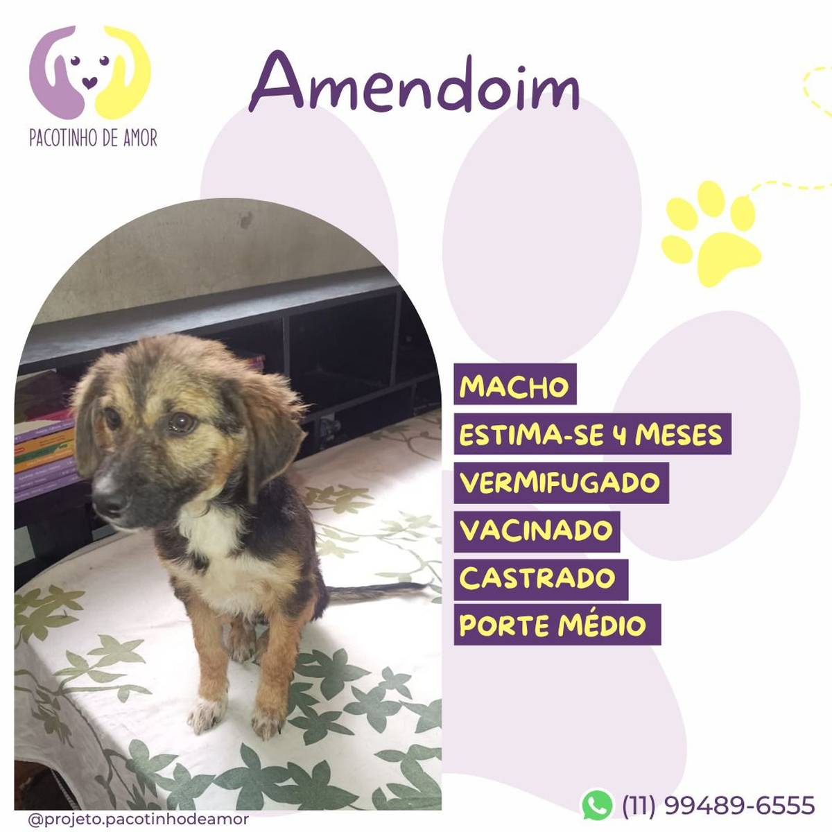 Obs.: Não reservamos animais. Não fazemos adoção por terceiros. Enviamos resposta para os perfis aprovados em até 2 dias úteis.