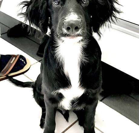 Cor: preta, com manchas brancas;