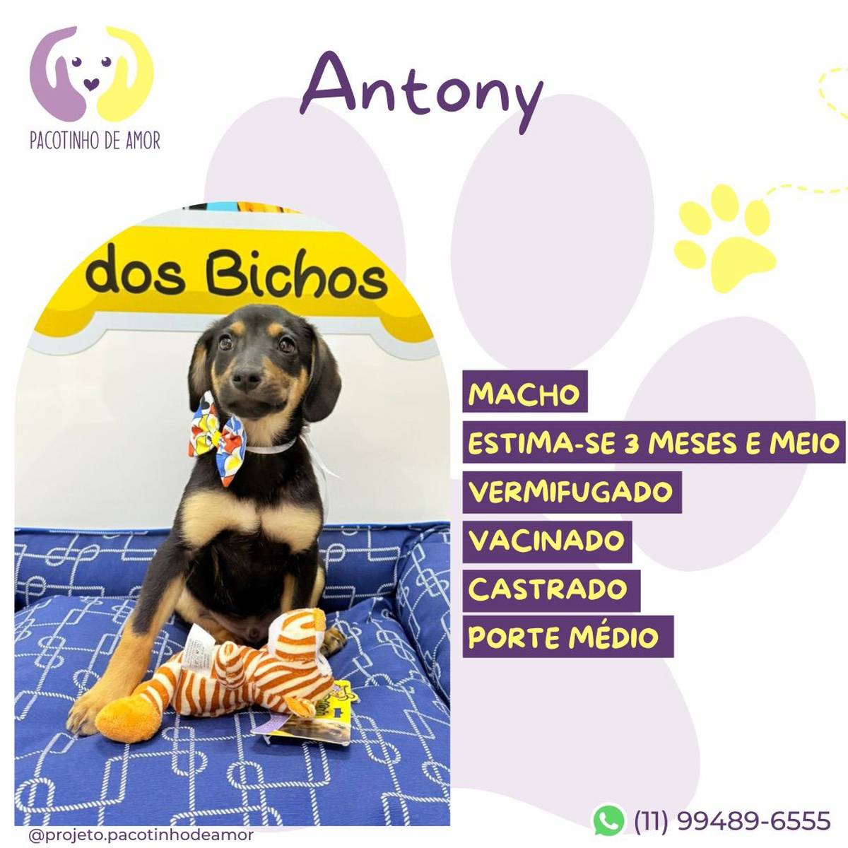 Obs.: Não reservamos animais. Não fazemos adoção por terceiros. Enviamos resposta para os perfis aprovados em até 3 dias úteis.