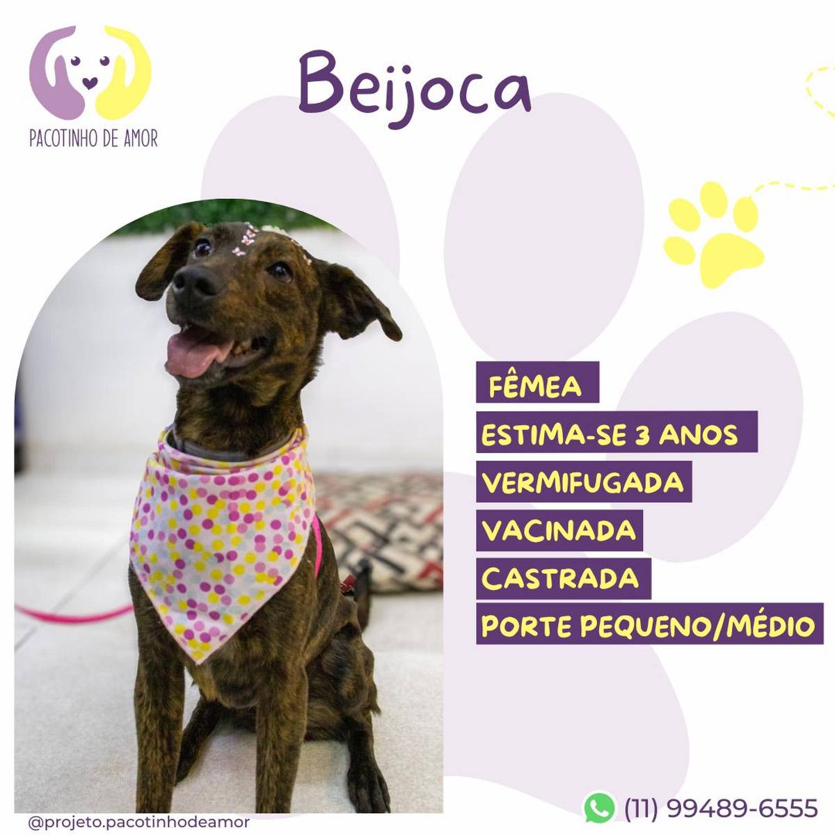 Obs.: Não reservamos animais. Não fazemos adoção por terceiros. Enviamos resposta para os perfis aprovados em até 3 dias úteis.