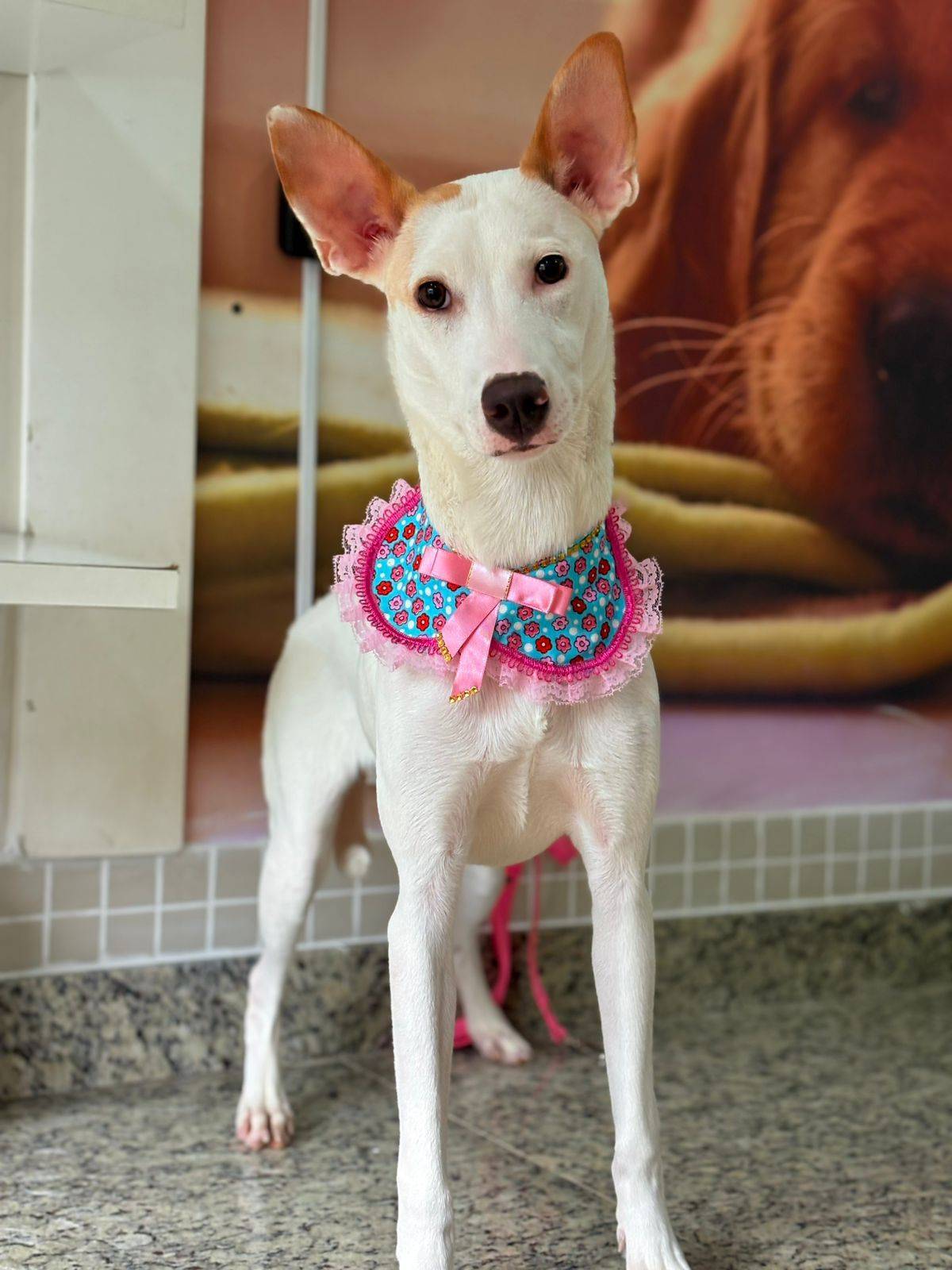 Ela é uma querida e agora espera por uma nova família cheia de amor.