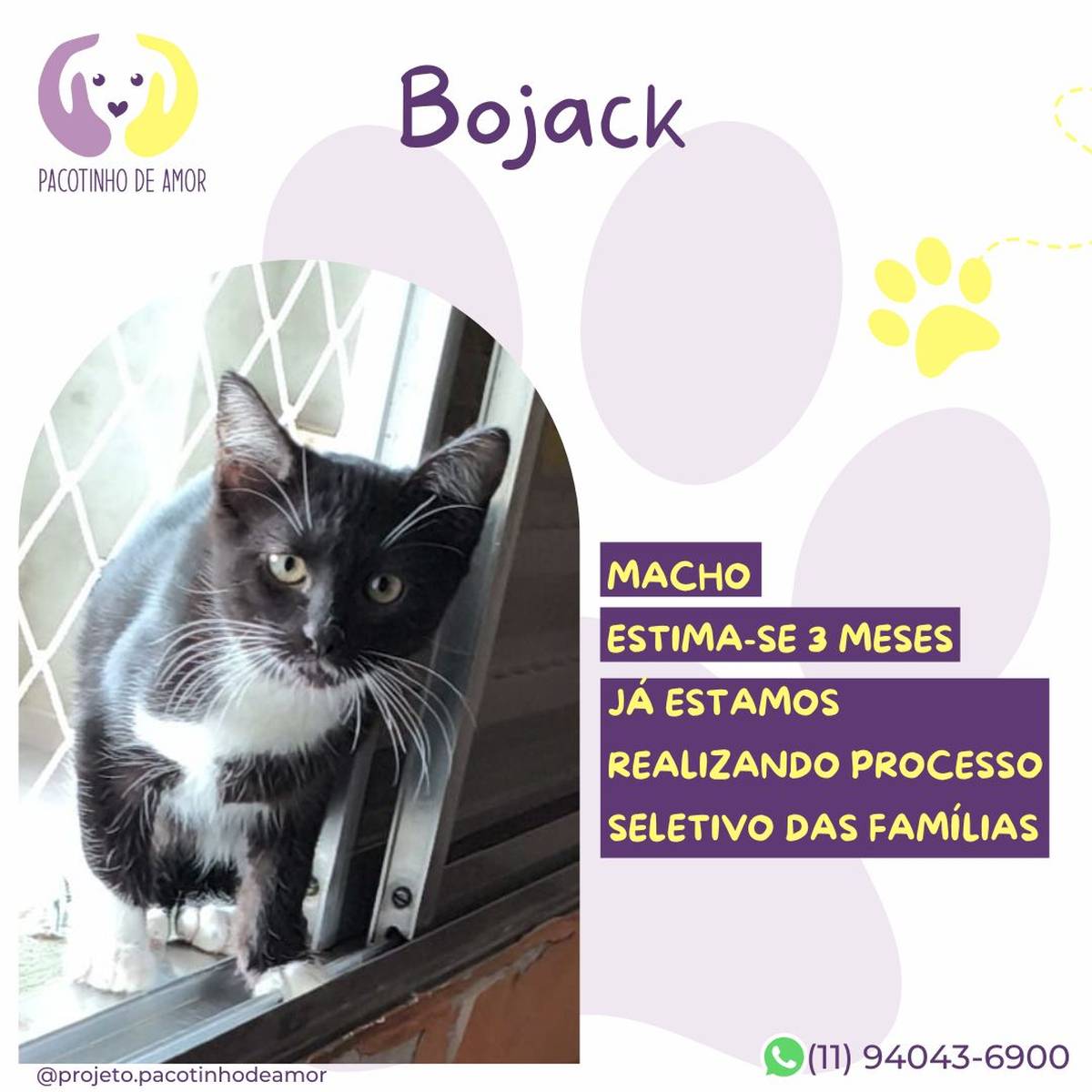 Obs.: Não reservamos animais. Não fazemos adoção por terceiros. Enviamos resposta para os perfis aprovados em até 2 dias úteis.