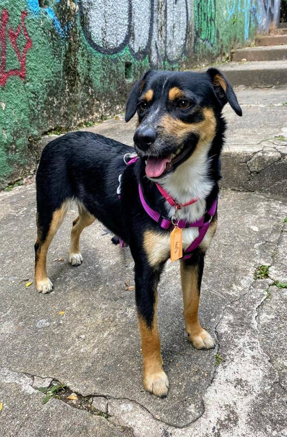 Estamos procurando um lar para a Bolinha, uma cachorrinha super dócil e amorosa! Ela tem aproximadamente 2 anos, pesa 11 kg. Sua pelagem é linda, preta e caramela, o que a torna ainda mais especial.