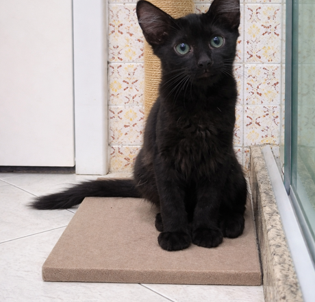Usa caixinha de areia, come ração seca. Já vermifugada e desparasitada.