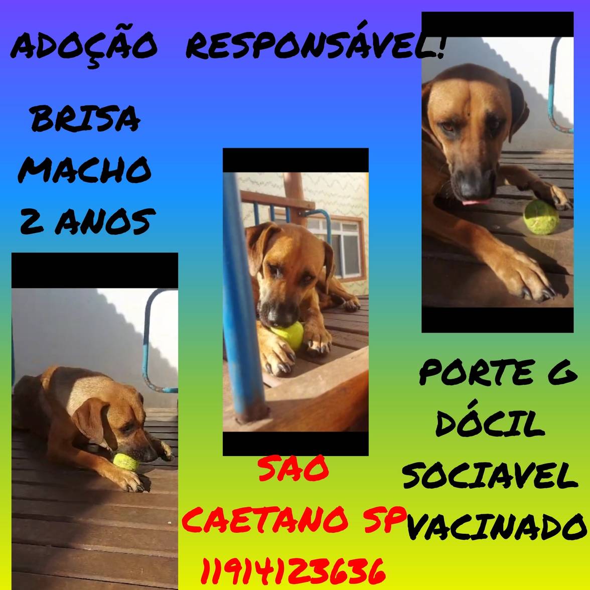Animais têm sentimentos e precisam de cuidados e atenção todos os dias. Ao adotar, você será responsável por garantir que ele seja cuidado e amado durante toda a vida dele!