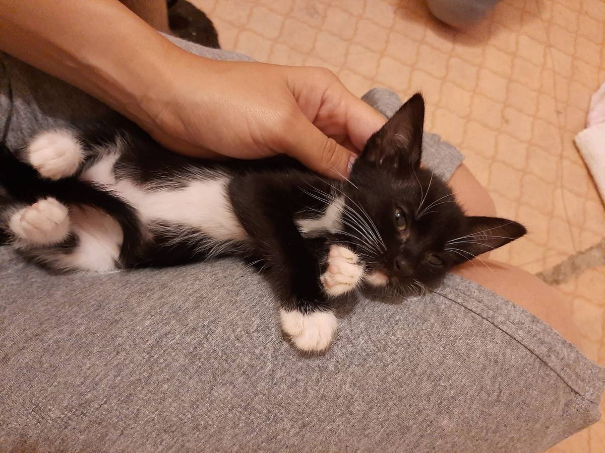 Ela é frajolinha, preto com branco, coisa mais amada, tem os bigodes bem branquinhos.