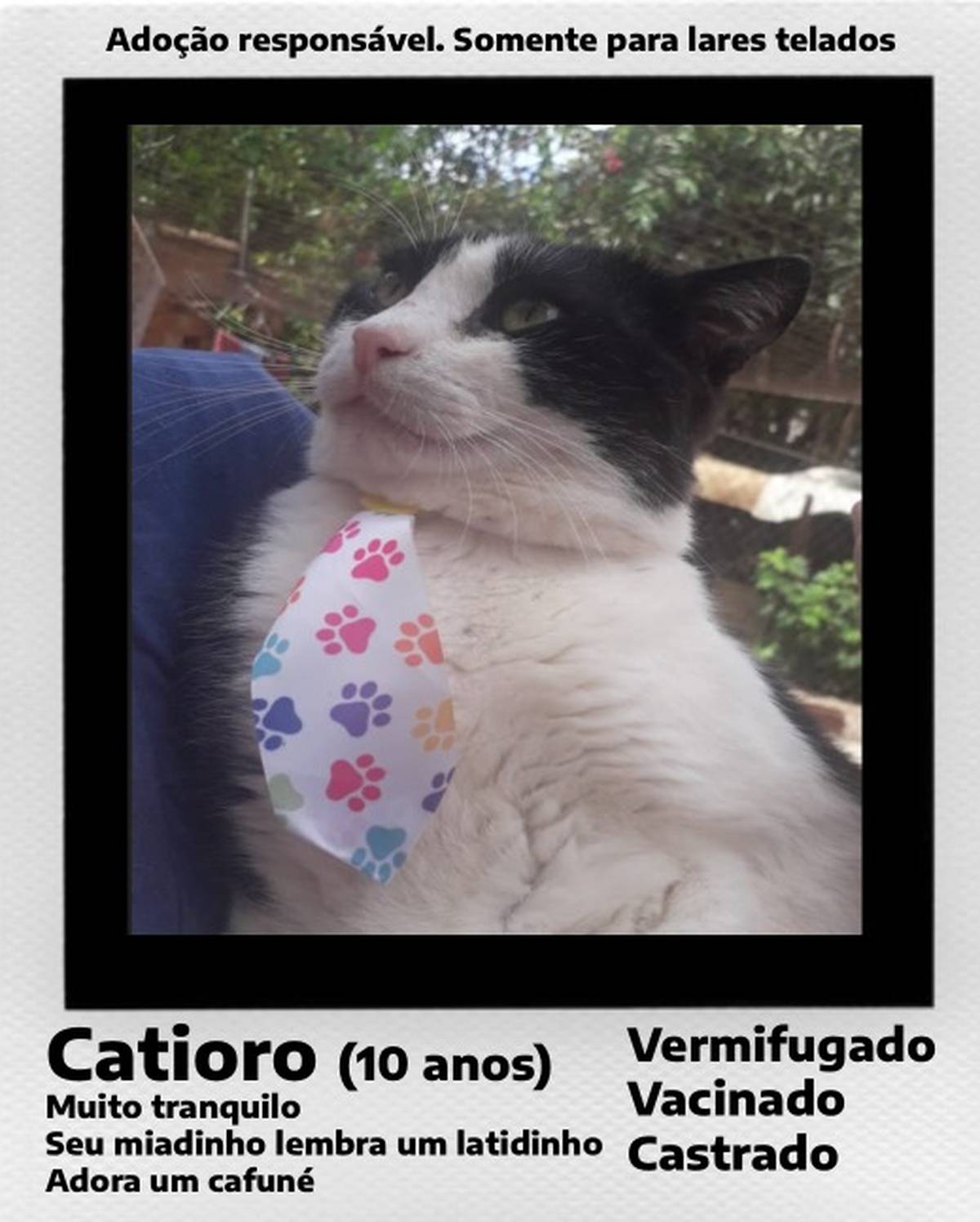 Depois de muitos anos vivendo na rua, o Catioro aprendeu a valorizar cada gesto de carinho. Hoje, está prontinho para receber — e retribuir — todo o amor de uma família que o veja como ele merece.