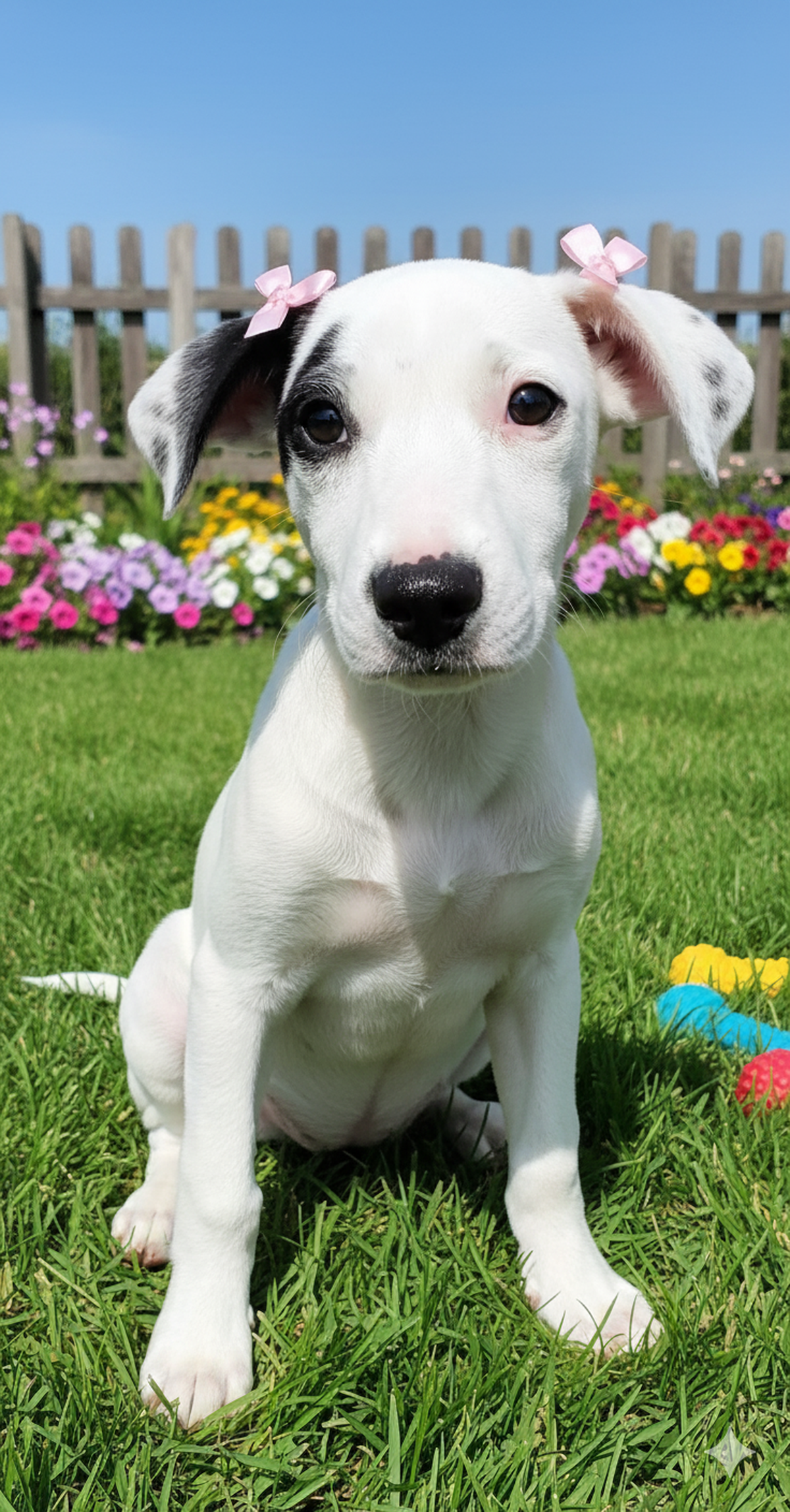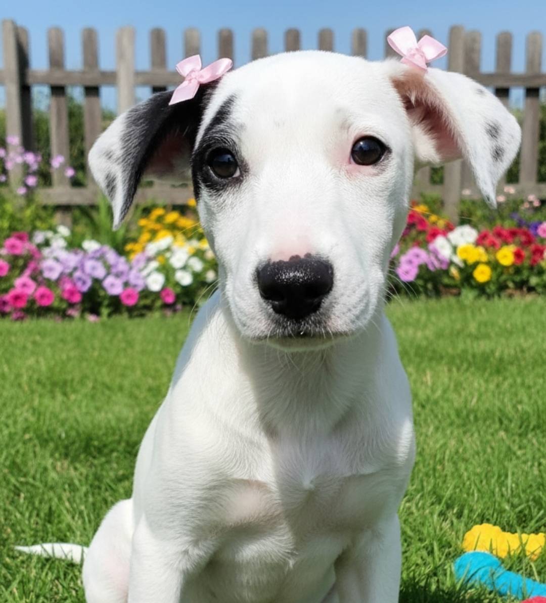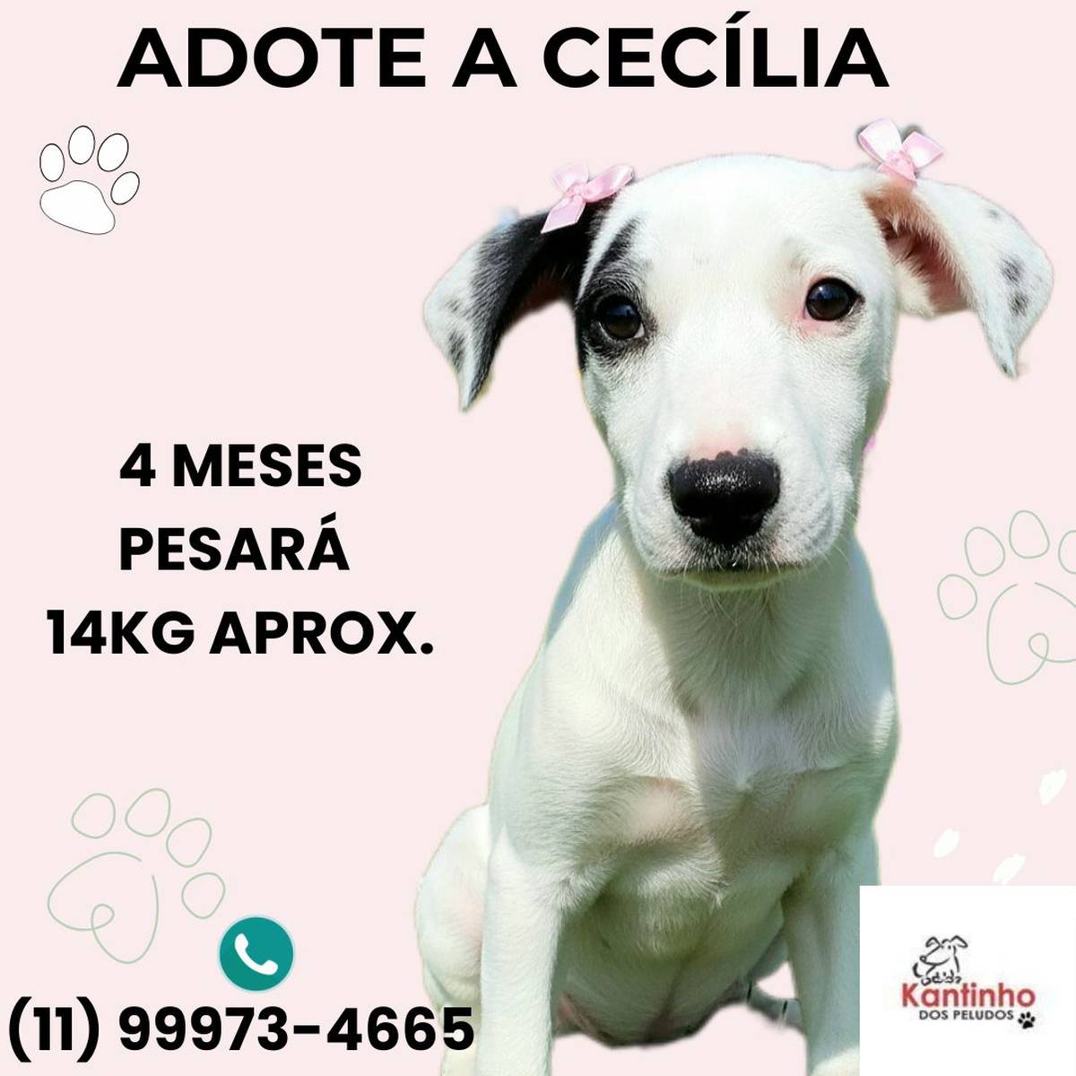 Essa bebê de 4 meses, com cerca de 14 kg, é cheia de doçura e vontade de brincar. Muito carinhosa, esperta e sociável, ela tem tudo para crescer cercada de amor — só falta encontrar seu lar definitivo!