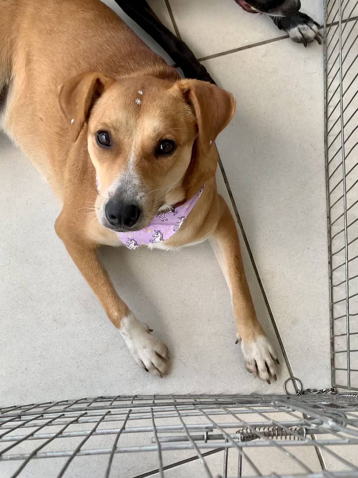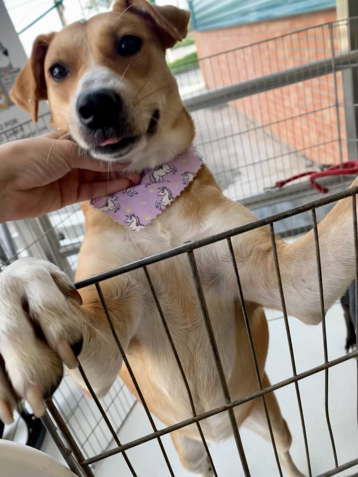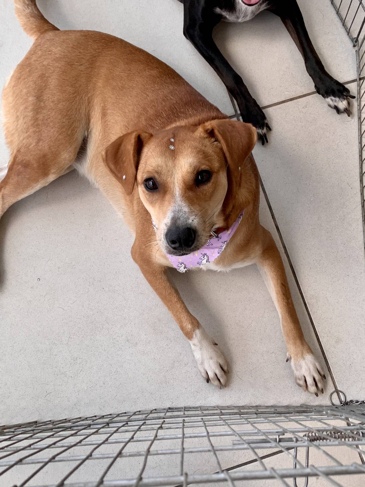 Foi resgatada das ruas, estava no cio com vários cães atrás dela, foi cuidada e tratada, agora só falta uma família
