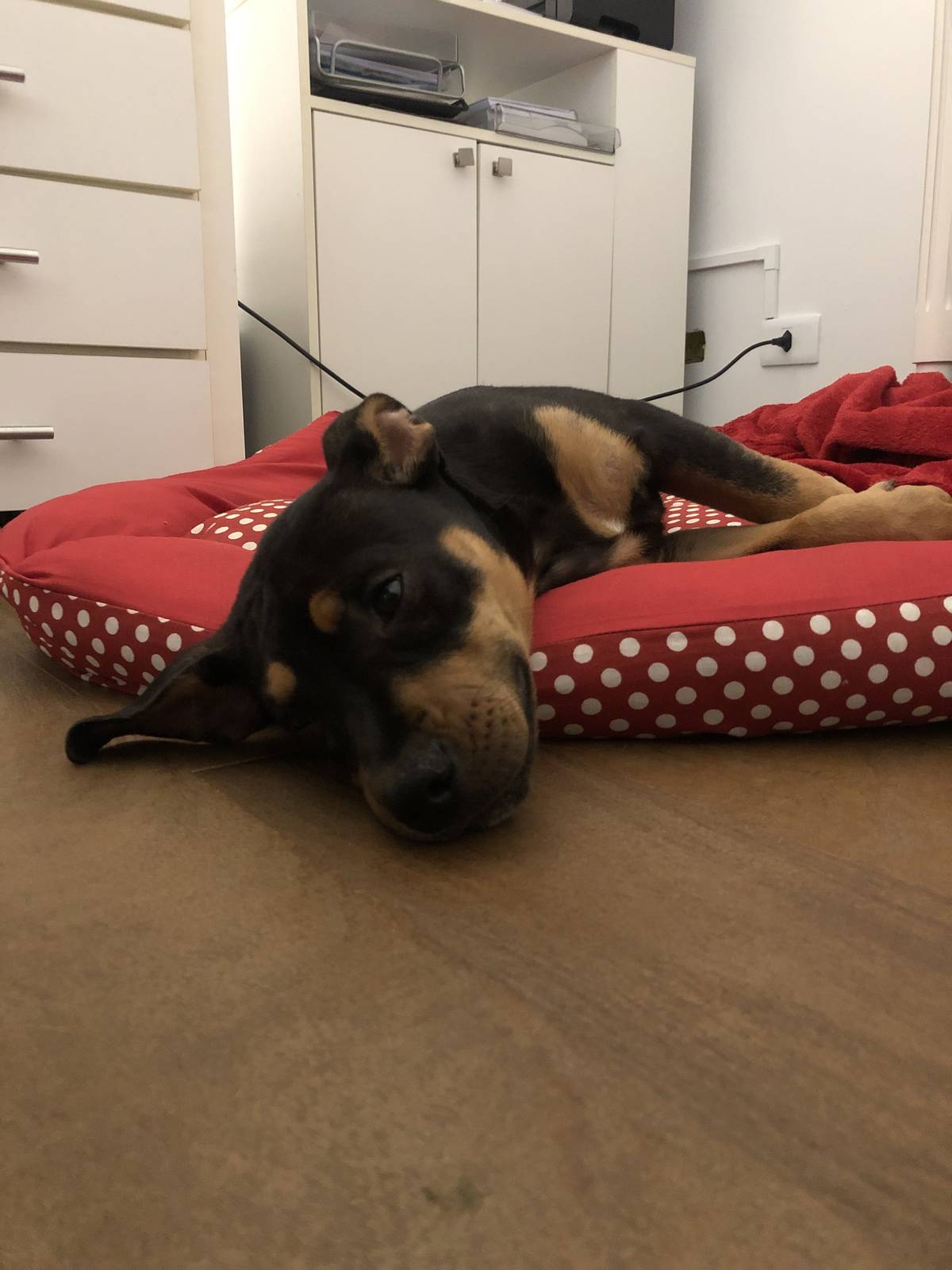 Tem aproximadamente 4 meses, EXTREMAMENTE dócil, AMA outros cachorros e não é medrosa. Ama estar perto de humanos, logo não quer mais ficar longe e só quer muito carinho!!!