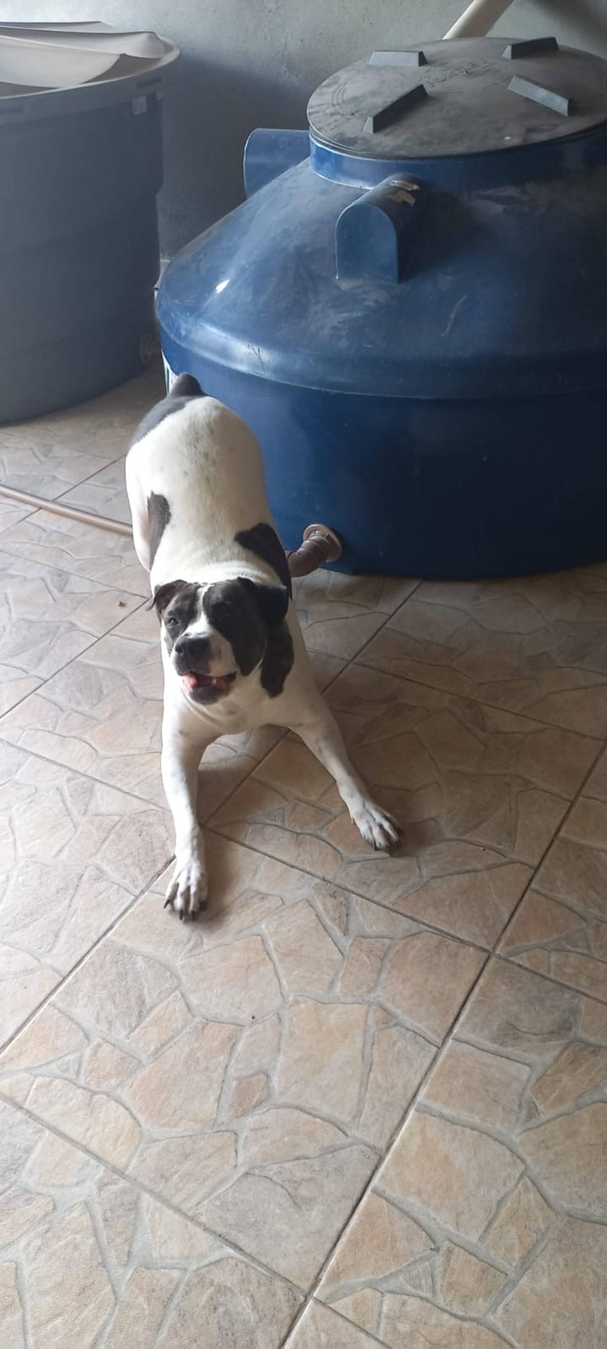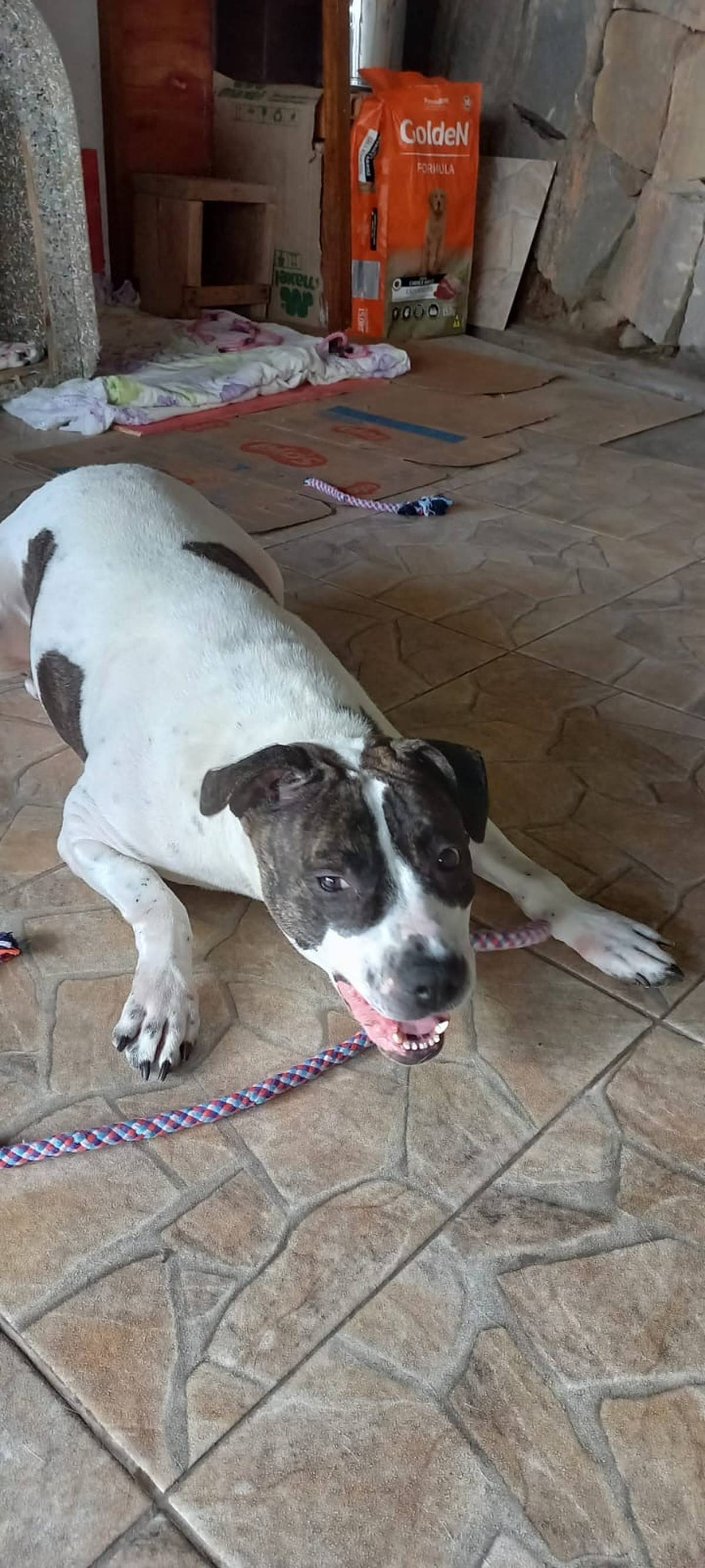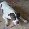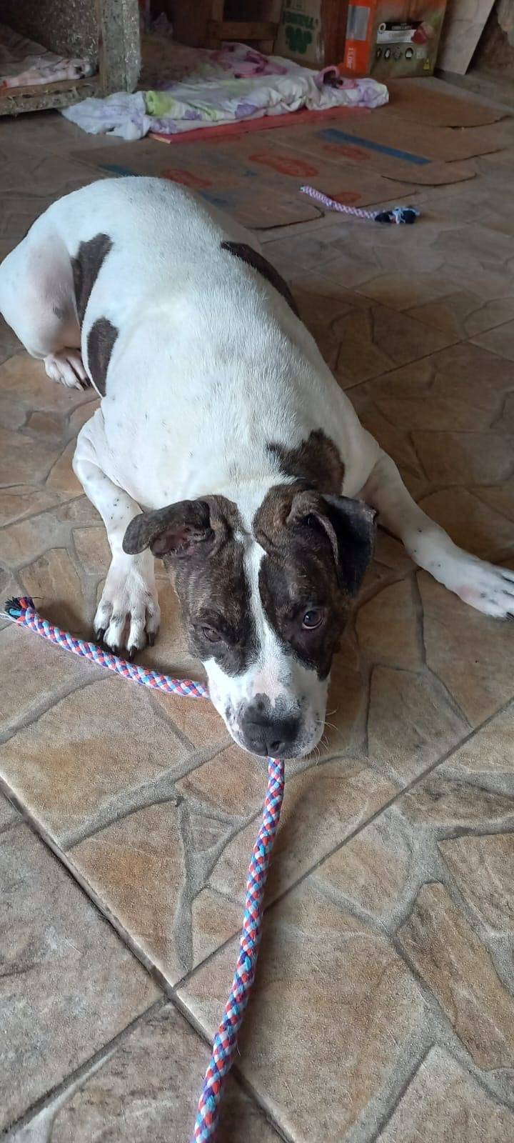 É uma cachorra submissa com outros cães e ainda não teve contato com gatos. Agora espera uma família para chamar de sua.