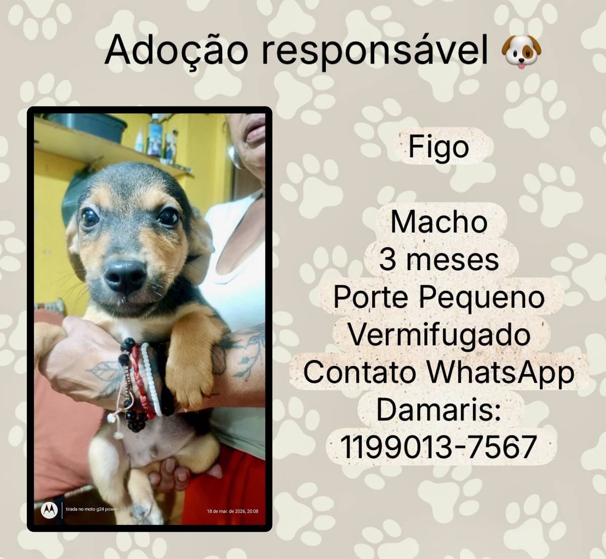 Animais têm sentimentos e precisam de cuidados e atenção todos os dias. Ao adotar, você será responsável por garantir que ele seja cuidado e amado durante toda a vida dele!