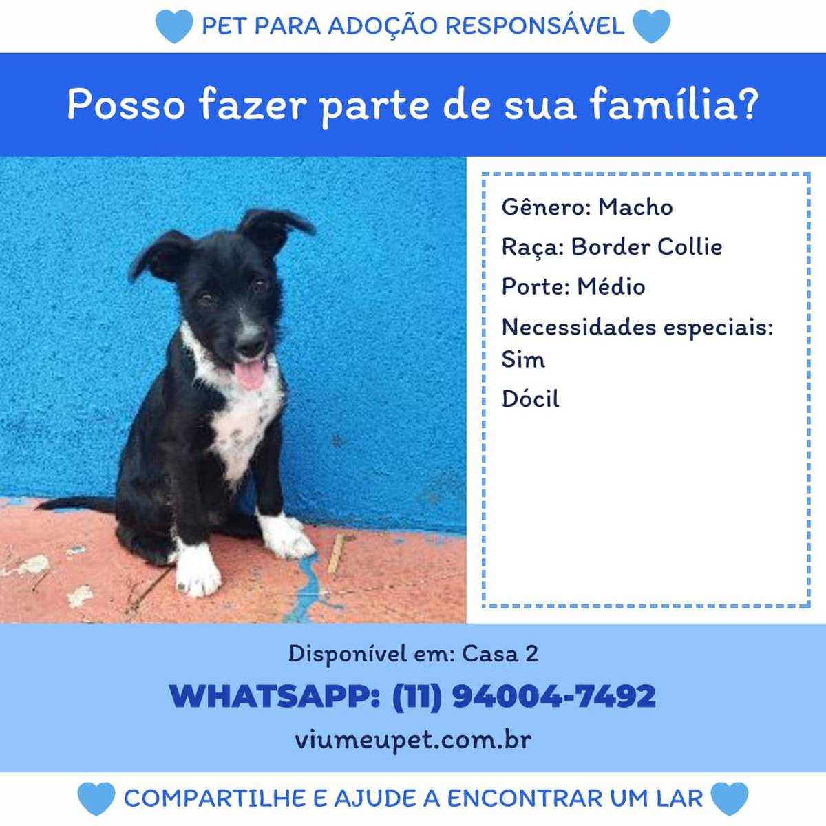 Animais têm sentimentos e precisam de cuidados e atenção todos os dias. Ao adotar, você será responsável por garantir que ele seja cuidado e amado durante toda a vida dele!
