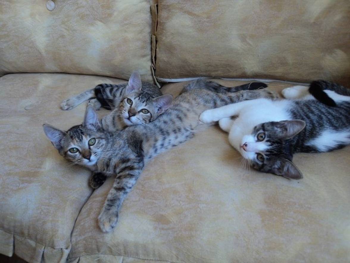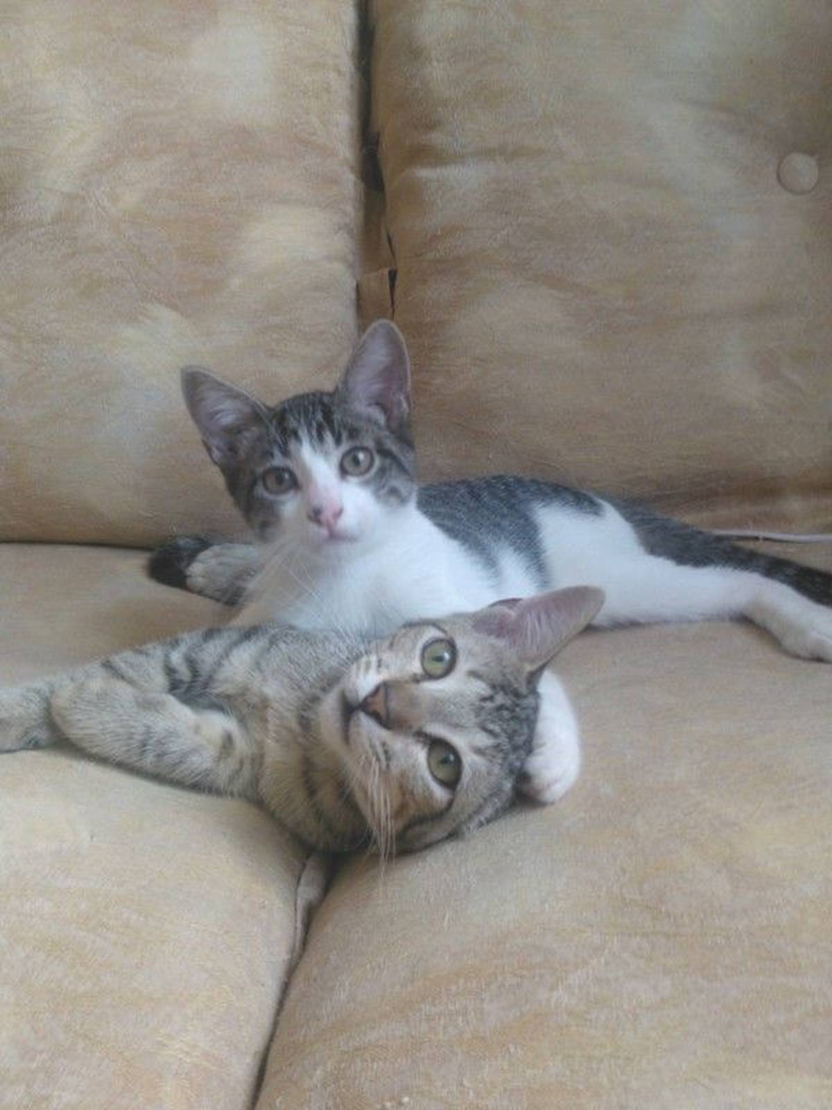 Estão castrados, e já são acostumados com outros gatos mais velhos, comem ração e usam a caixinha de areia para as necessidades.