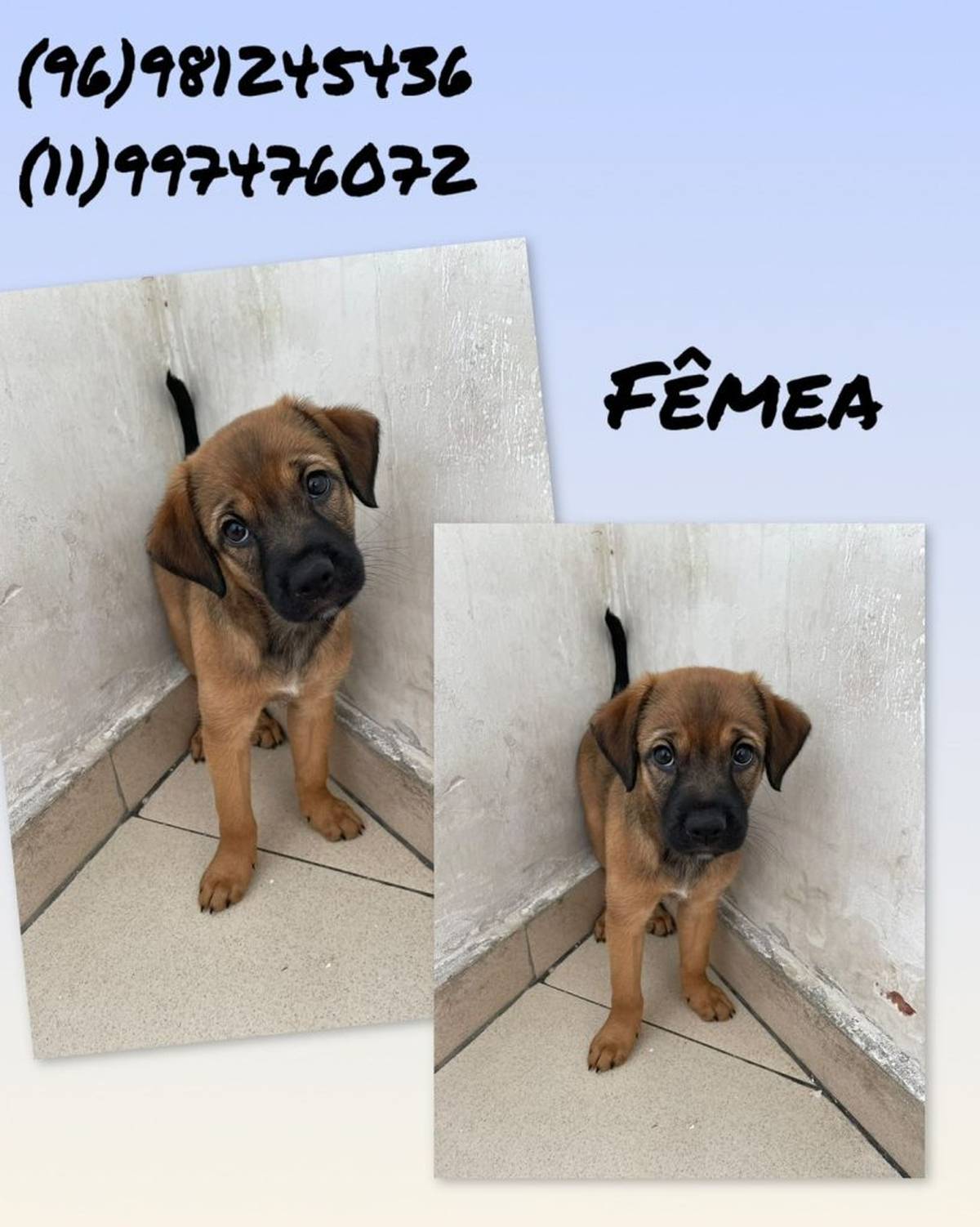 2 Filhotes dóceis para adoção urgente. Falar com Mirleidis Milanis Rodríguez para adotar, por telefone ou whatsapp abaixo: