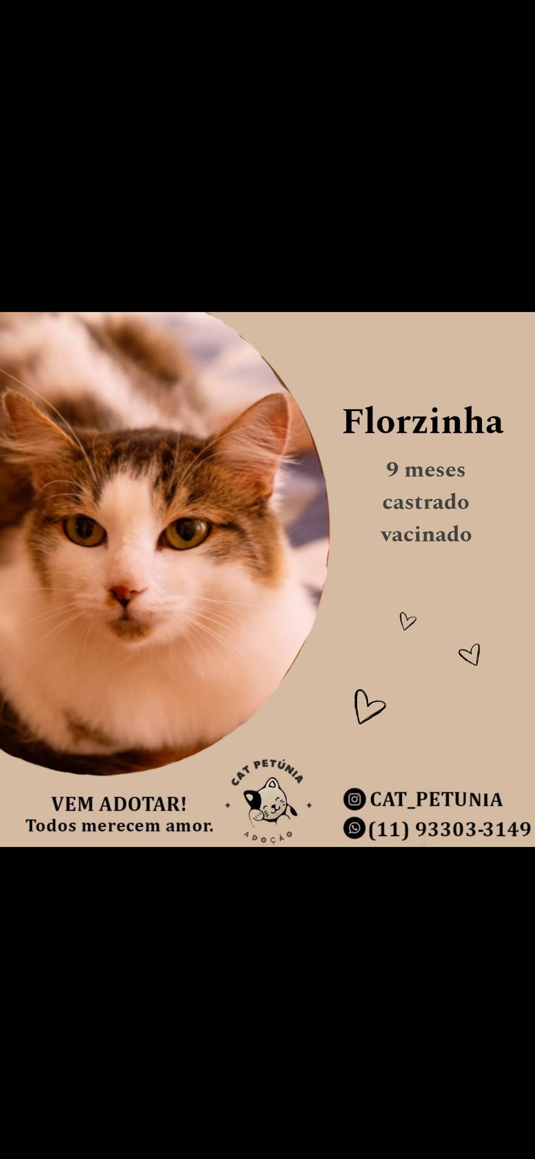 Animais têm sentimentos e precisam de cuidados e atenção todos os dias. Ao adotar, você será responsável por garantir que ele seja cuidado e amado durante toda a vida dele!
