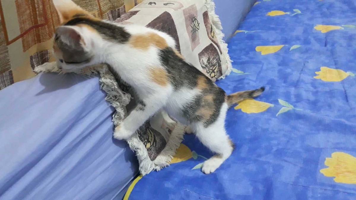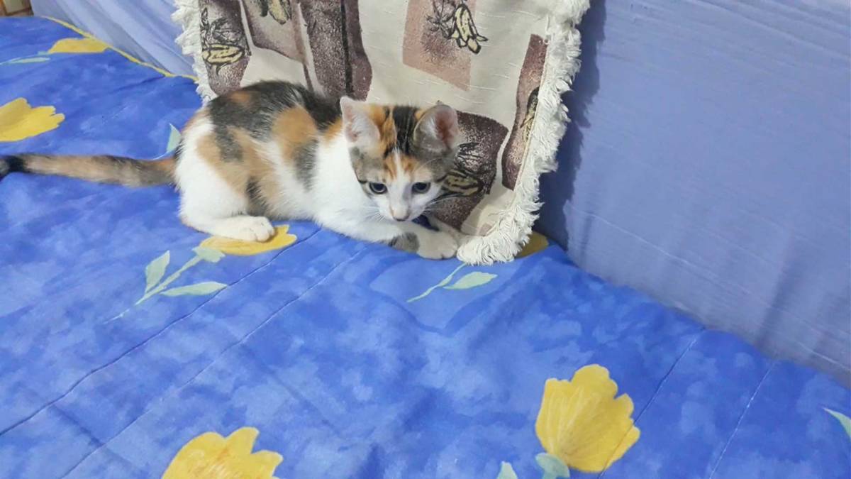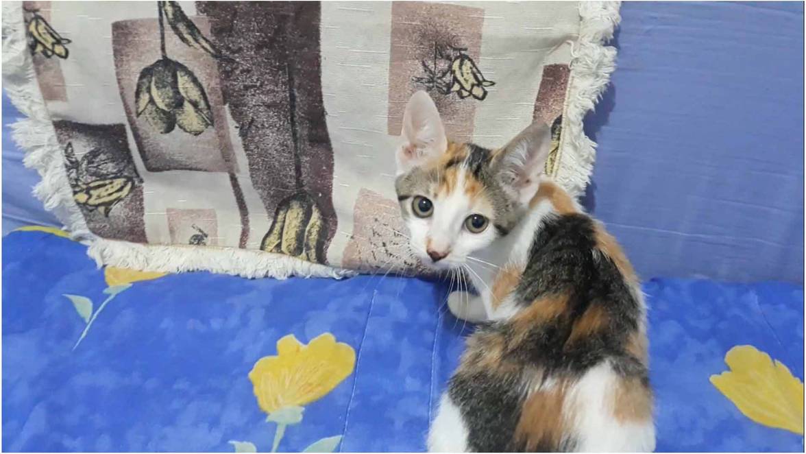 Ela tem 03 meses de idade apenas, já come ração e usa a caixa de areia normalmente.