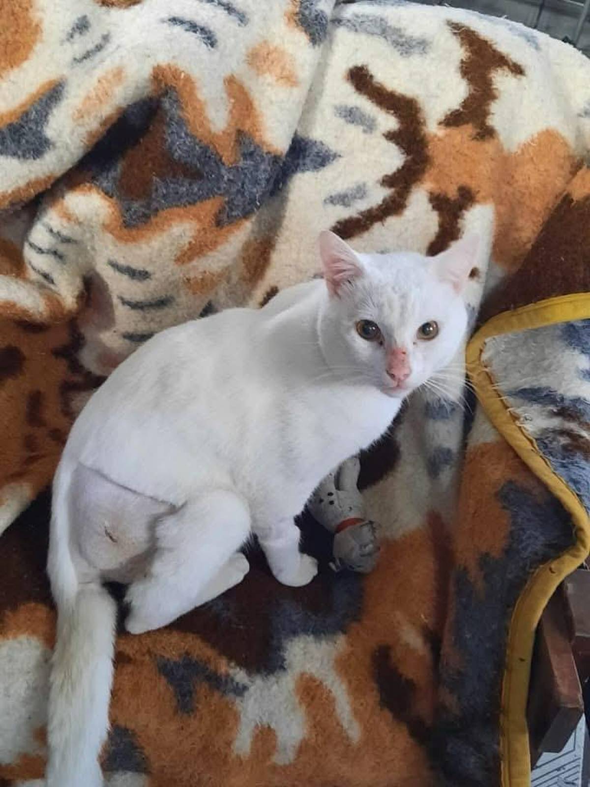 Ele foi resgatado da rua com uma fratura grave e precisou passar por cirurgia para retirada da cabeça do fêmur.