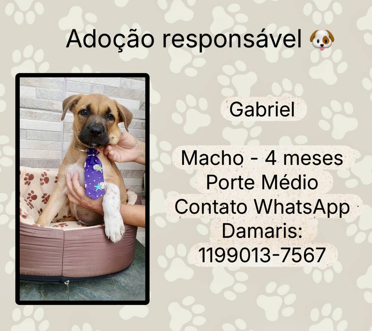 Animais têm sentimentos e precisam de cuidados e atenção todos os dias. Ao adotar, você será responsável por garantir que ele seja cuidado e amado durante toda a vida dele!