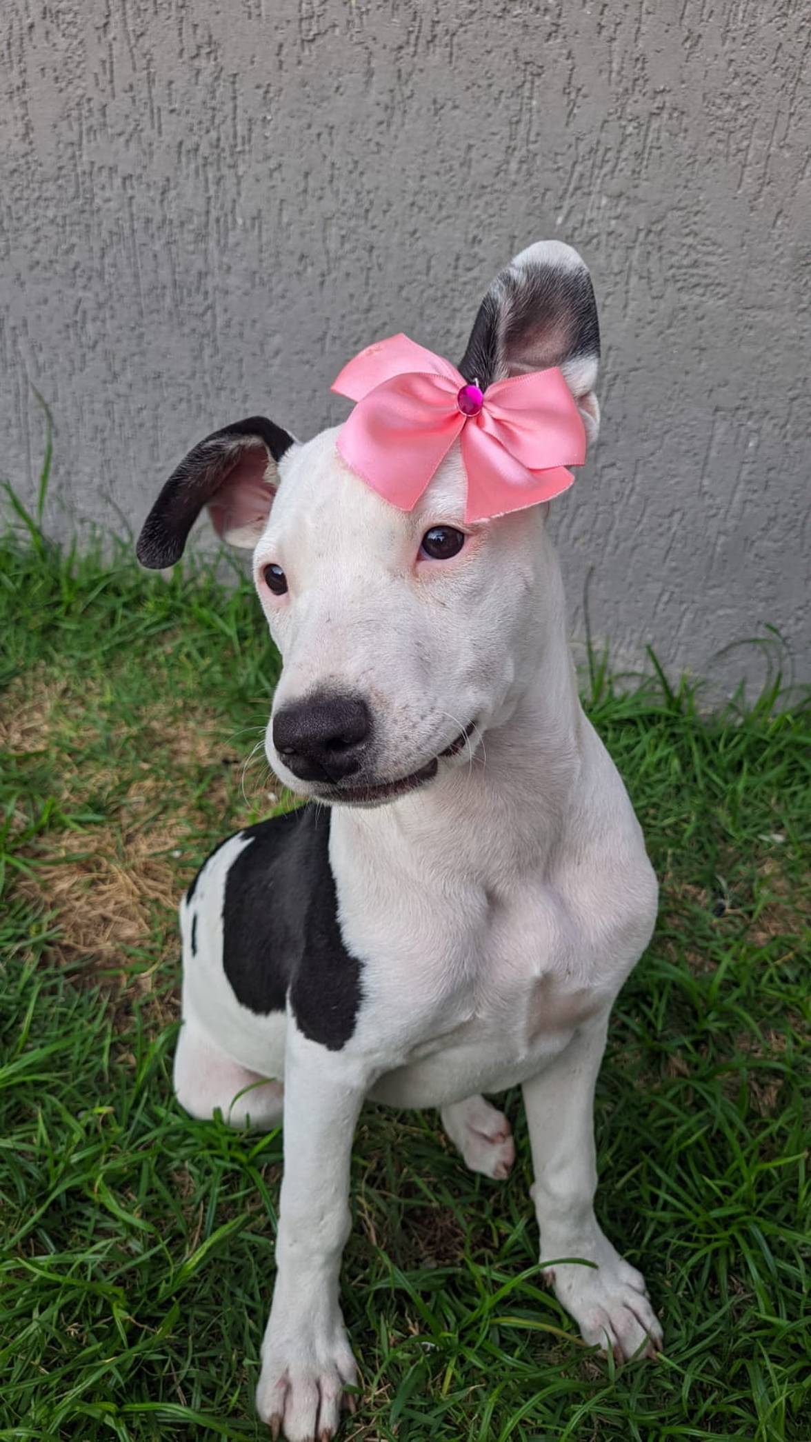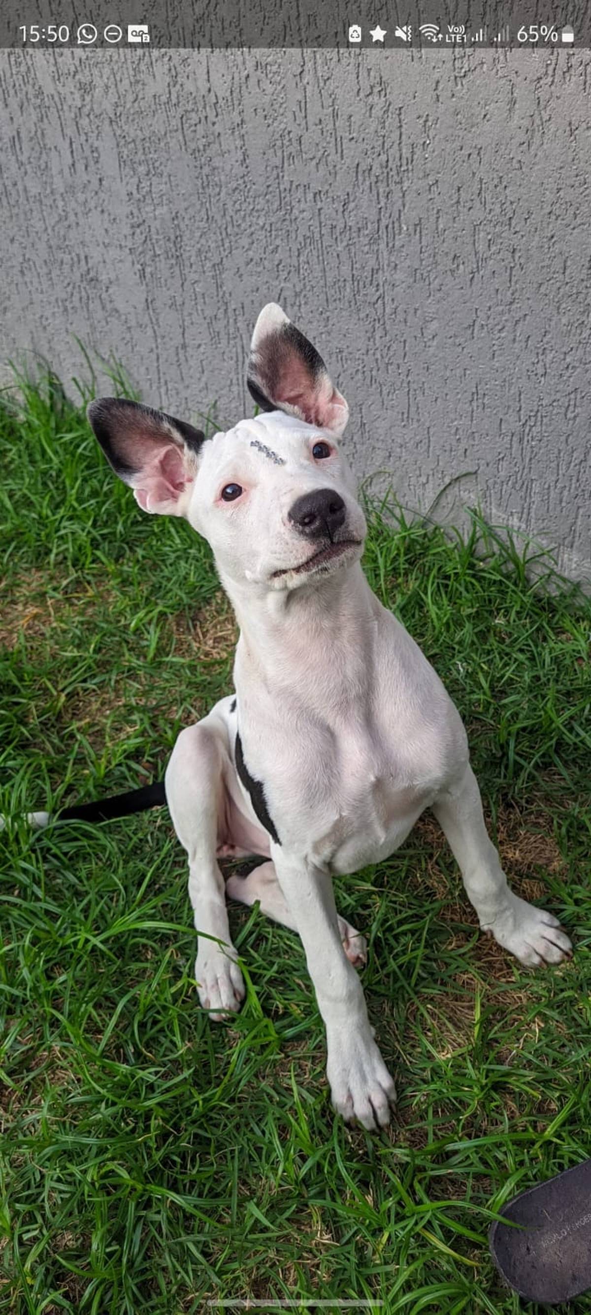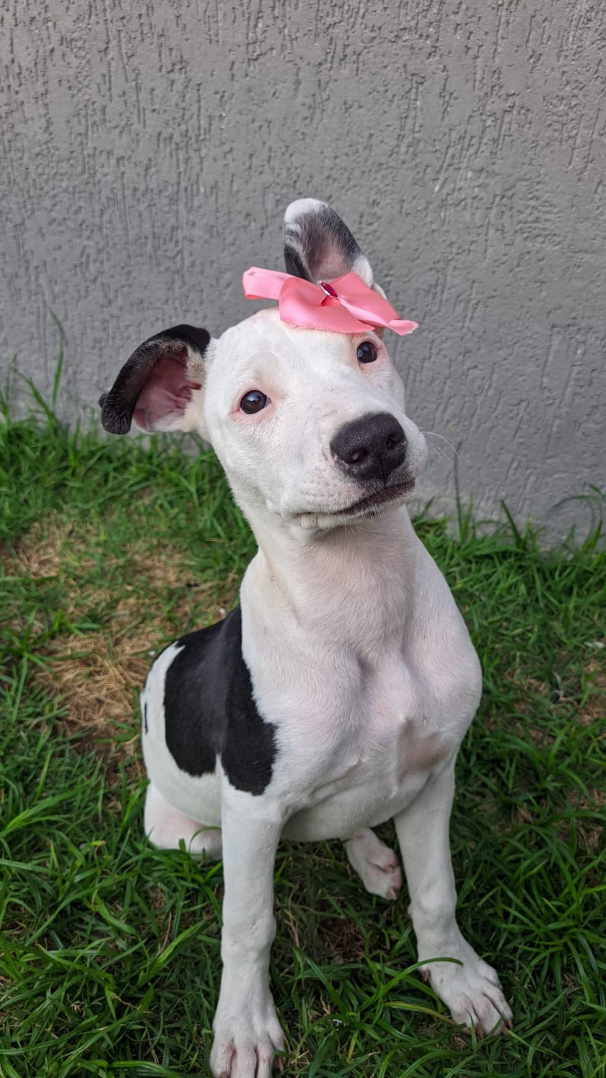 Ela tem 8 meses, está vacinada, está com 17kg e só será entregue castrada.