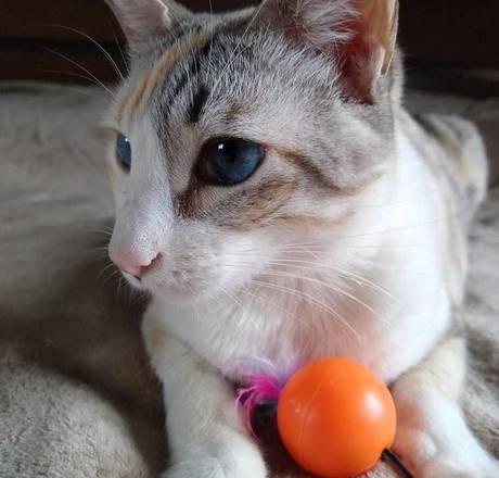 Gatão aparentemente já teve dono pois sabe sentar e também brinca com bolinha.