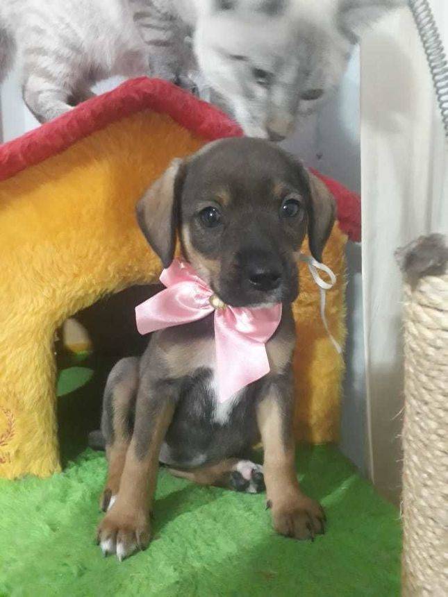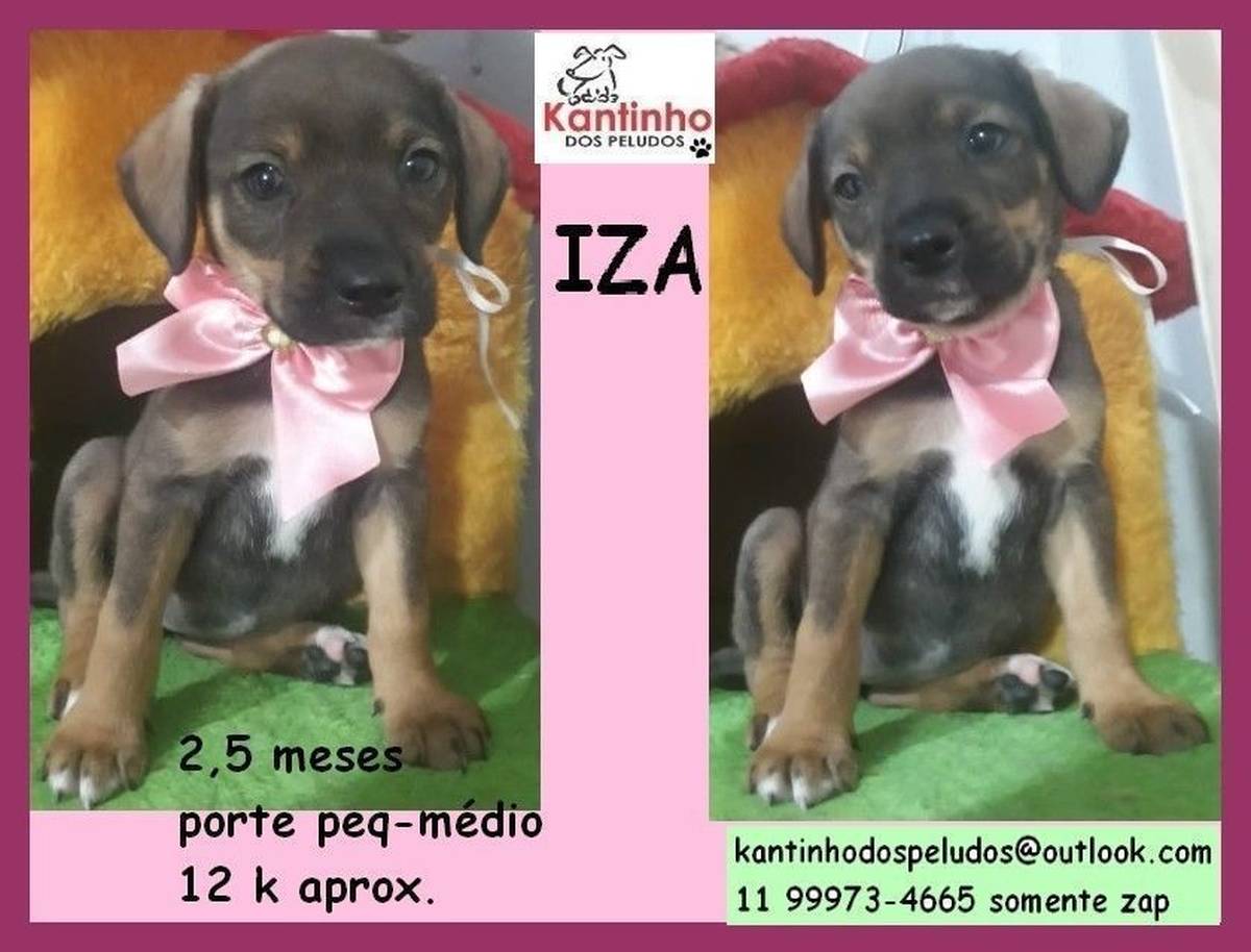 Tem 2 meses e meio, ficará de porte pequeno para médio, com aproximadamente 12kg, será doada vermifugada, vacinada e castrada ou com termo de castração futura. É muito boazinha, brincalhona e convive muito bem com outros cães, uma fofa!