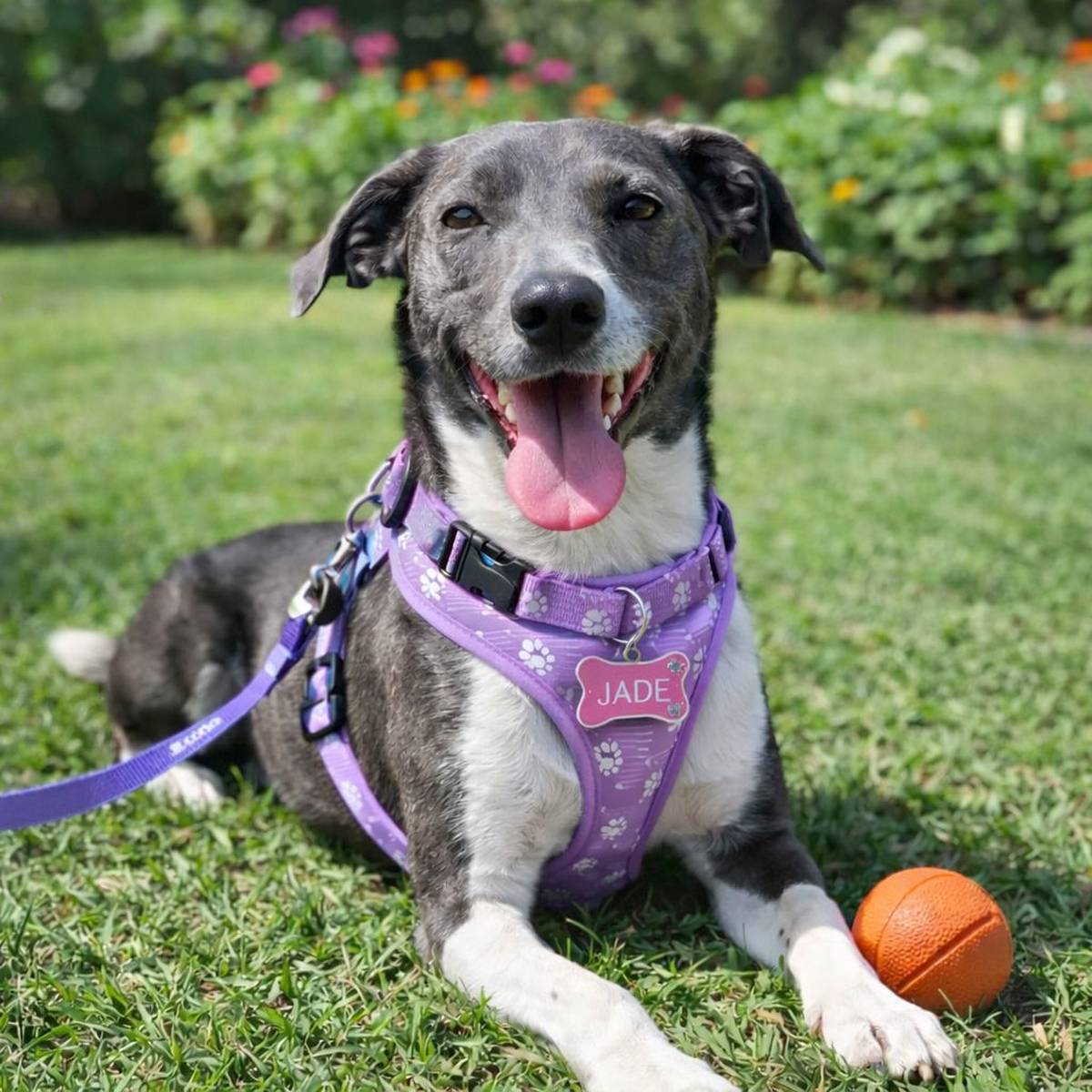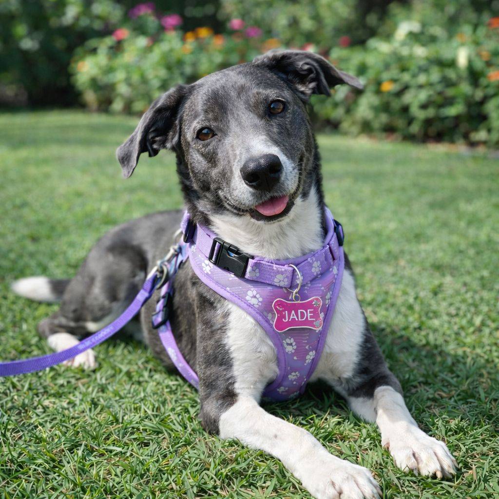 Brincalhona, alegre e muito apegada às pessoas, Jade ama interação e convive super bem com outros cães.