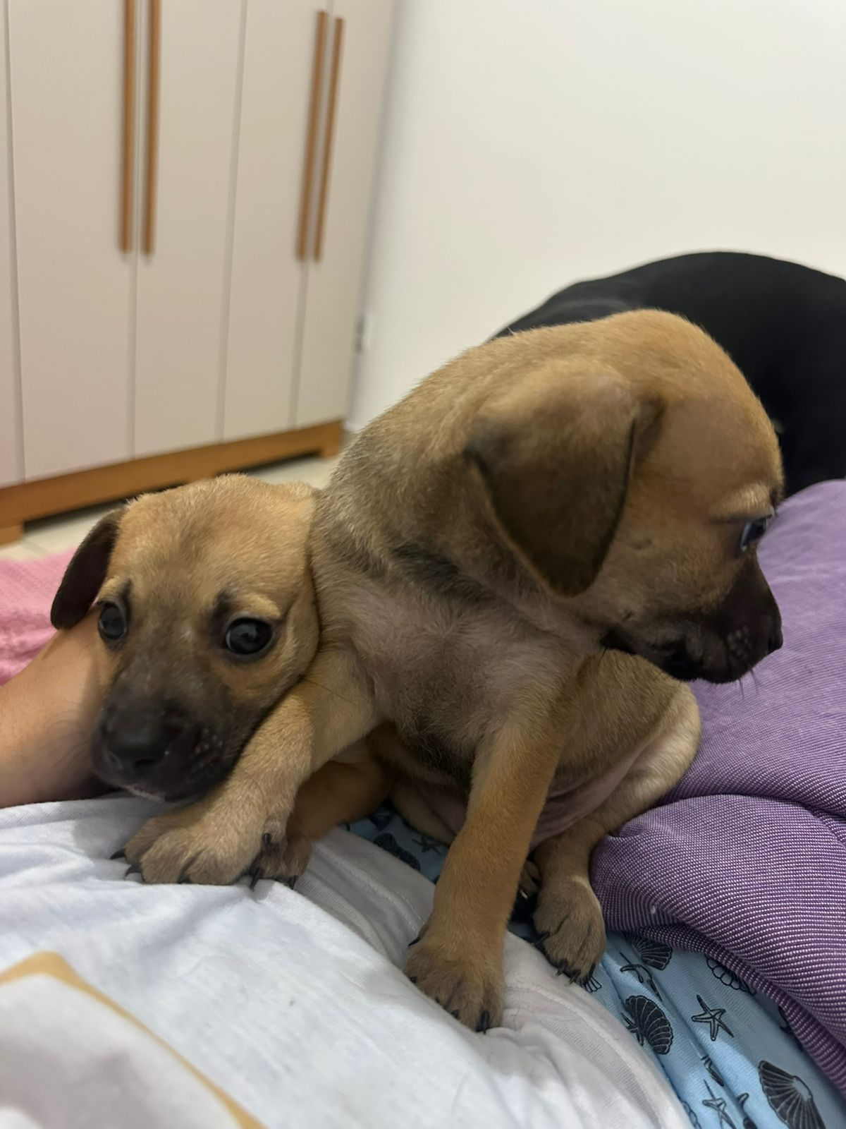 Eles tem apenas 2 meses de idade e serão de porte pequeno/médio quando adulto.