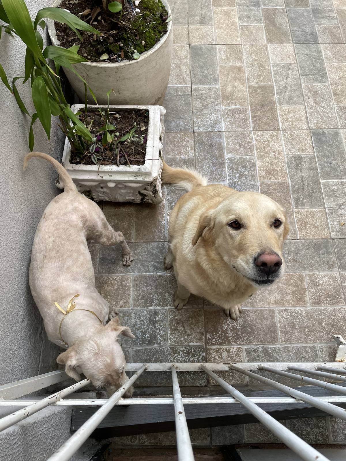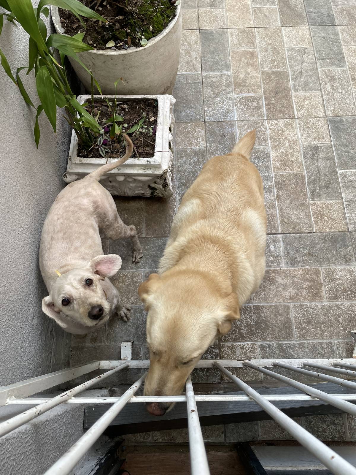 Resumo: Joey (Labrador) + Laisa (Poodle). Ambos castrados e muito unidos.