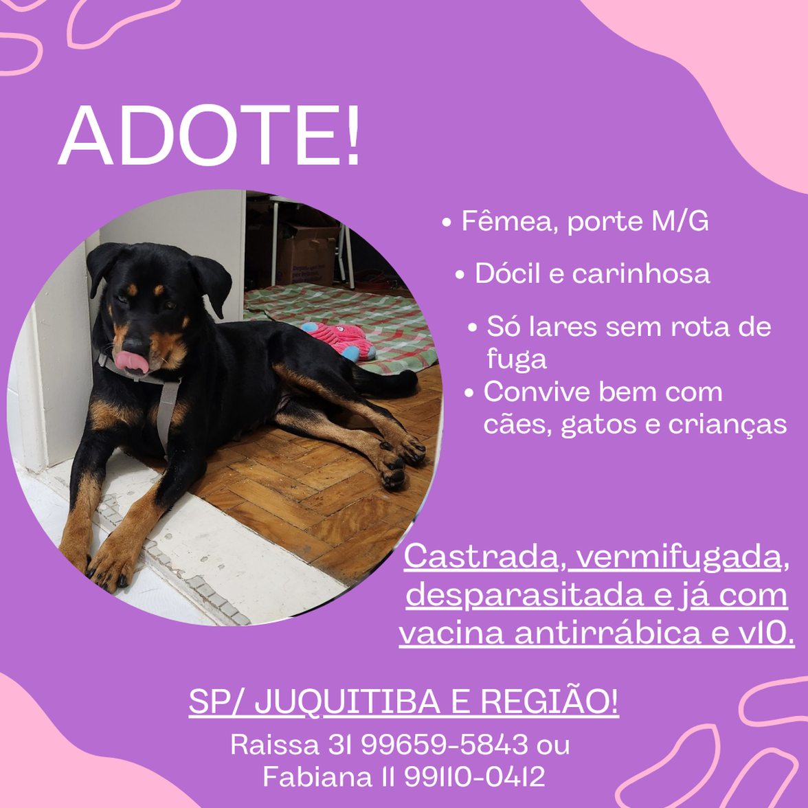 Para adotar esse pet ou saber mais sobre ele, entre em contato com o protetor:
