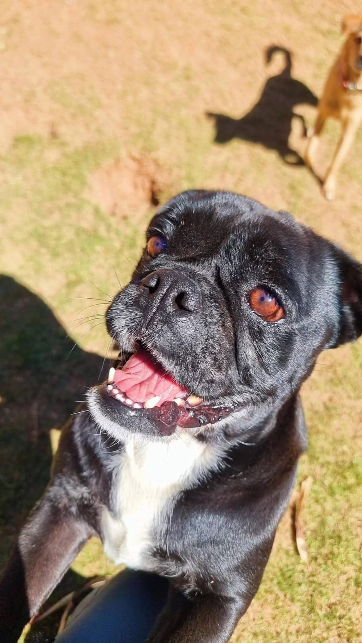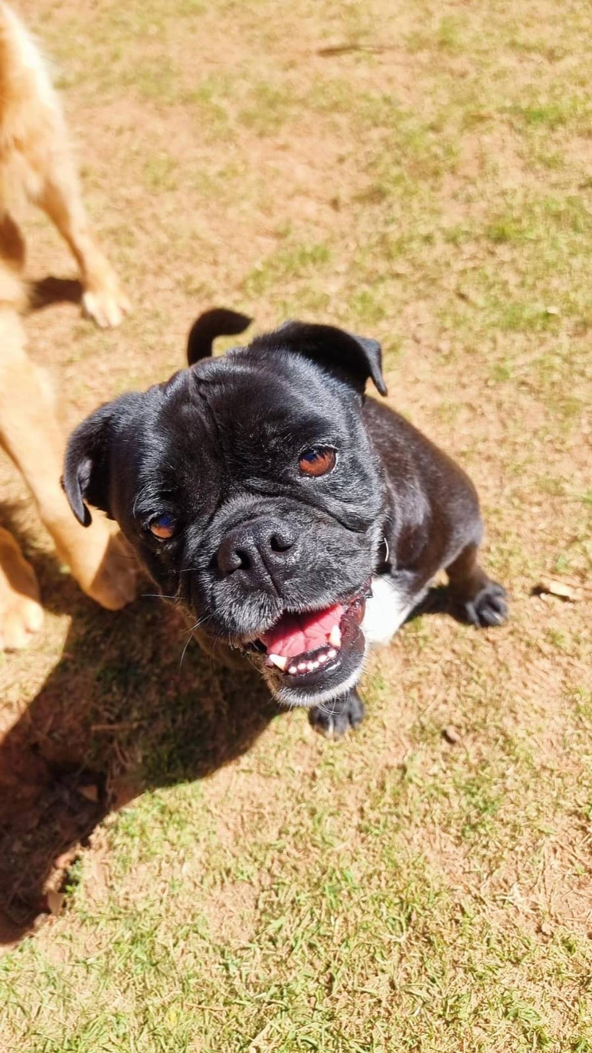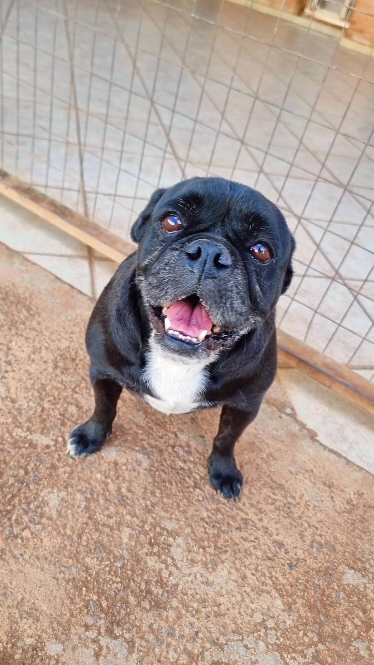 O pai dele era um Buldog Ingles e sua mãe é uma PUG e ele ficou essa misturinha linda.