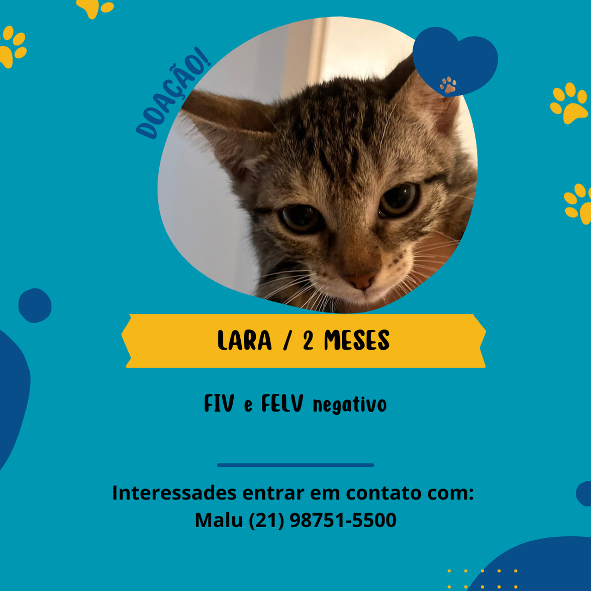 Animais têm sentimentos e precisam de cuidados e atenção todos os dias. Ao adotar, você será responsável por garantir que ele seja cuidado e amado durante toda a vida dele!