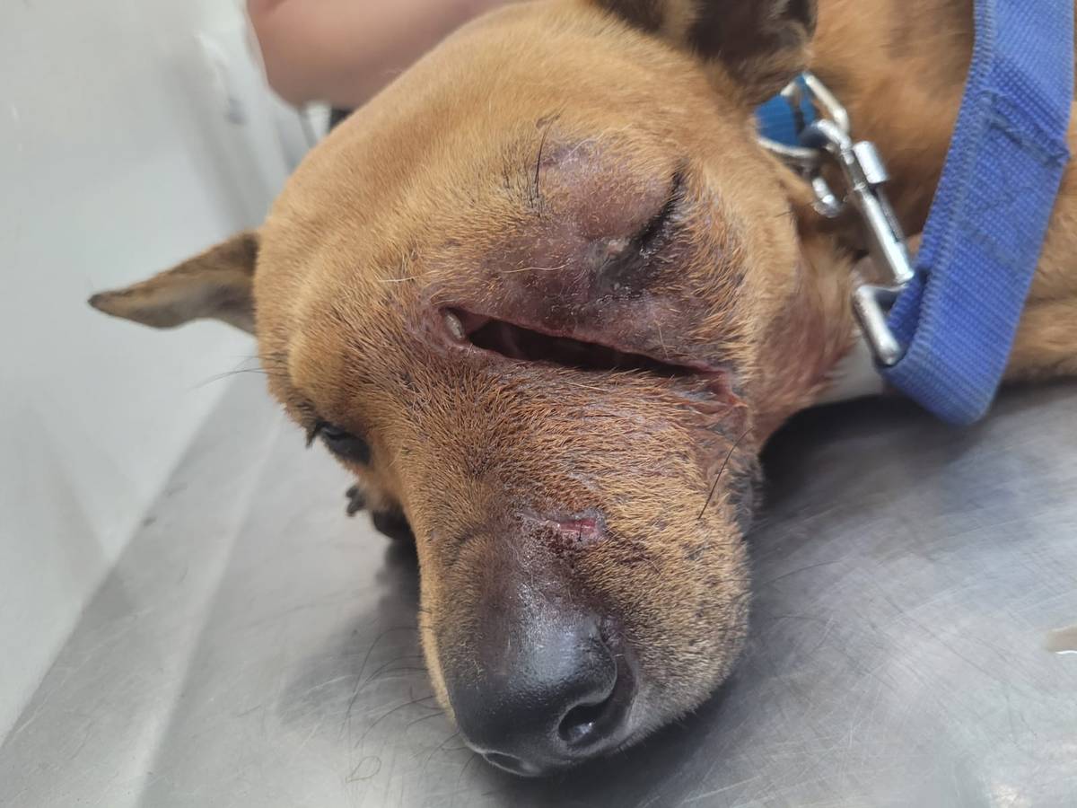 Leão foi atropelado e, ferido, buscou abrigo na comunidade onde vivia. Escondeu-se como pôde, tentando encontrar algum alívio, mesmo que fosse apenas uma falsa sensação de segurança. Foi nesse mesmo lugar que, possivelmente, ele também sofreu um ato de crueldade ainda maior: ao ser resgatado, foi identificado um corte profundo e infeccionado em seu rosto, tomado por larvas e pus — resultado de uma facada violenta que quase o fez perder a visão.