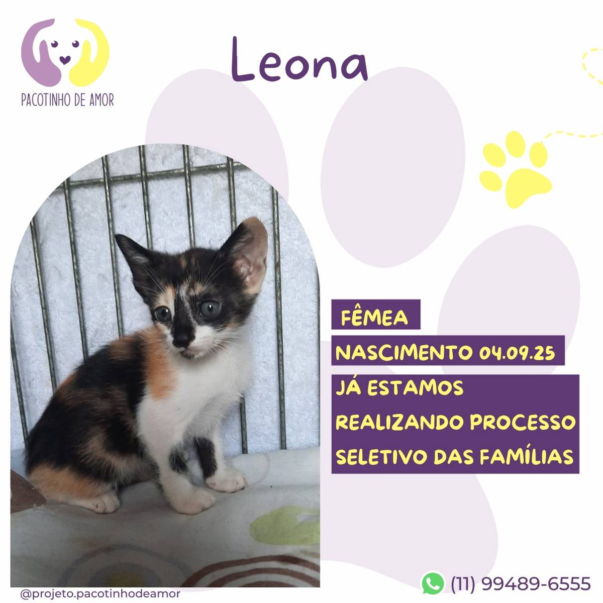 Obs.: Não reservamos animais. Não fazemos adoção por terceiros. Enviamos resposta para os perfis aprovados em até 3 dias úteis.