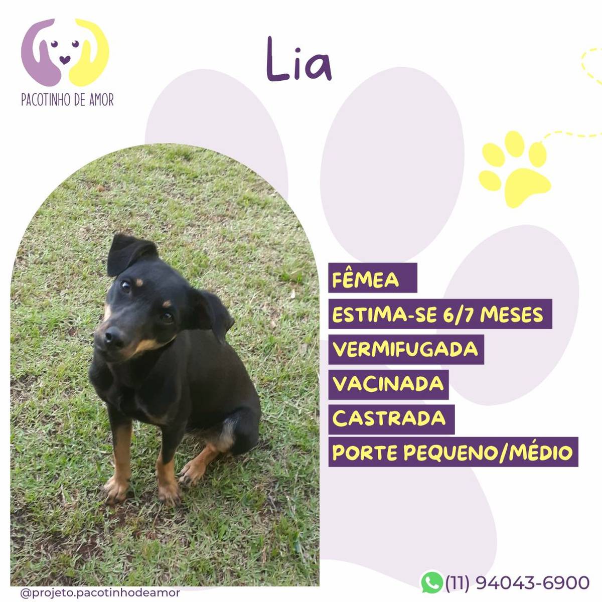 Obs.: Não reservamos animais. Não fazemos adoção por terceiros. Enviamos resposta para os perfis aprovados em até 2 dias úteis.
