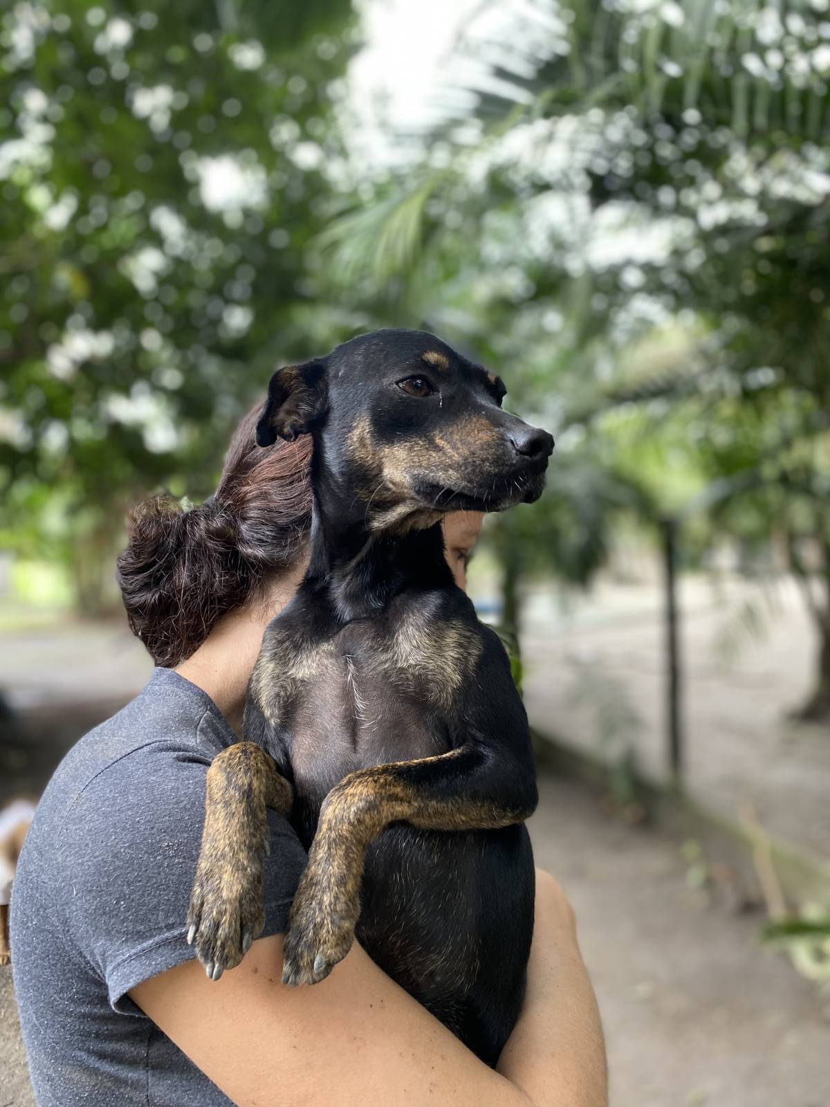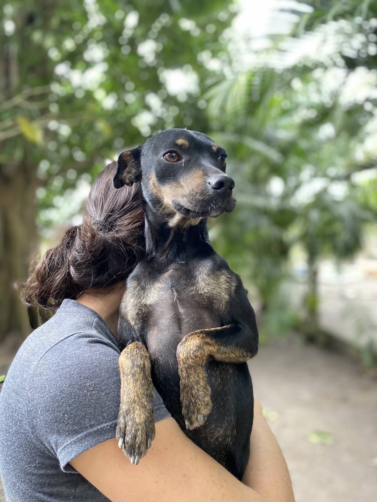 Ela cuidou com todo amor de *cinco filhotes lindos* (também disponíveis para adoção!) e agora chegou a vez dela ser cuidada 💛