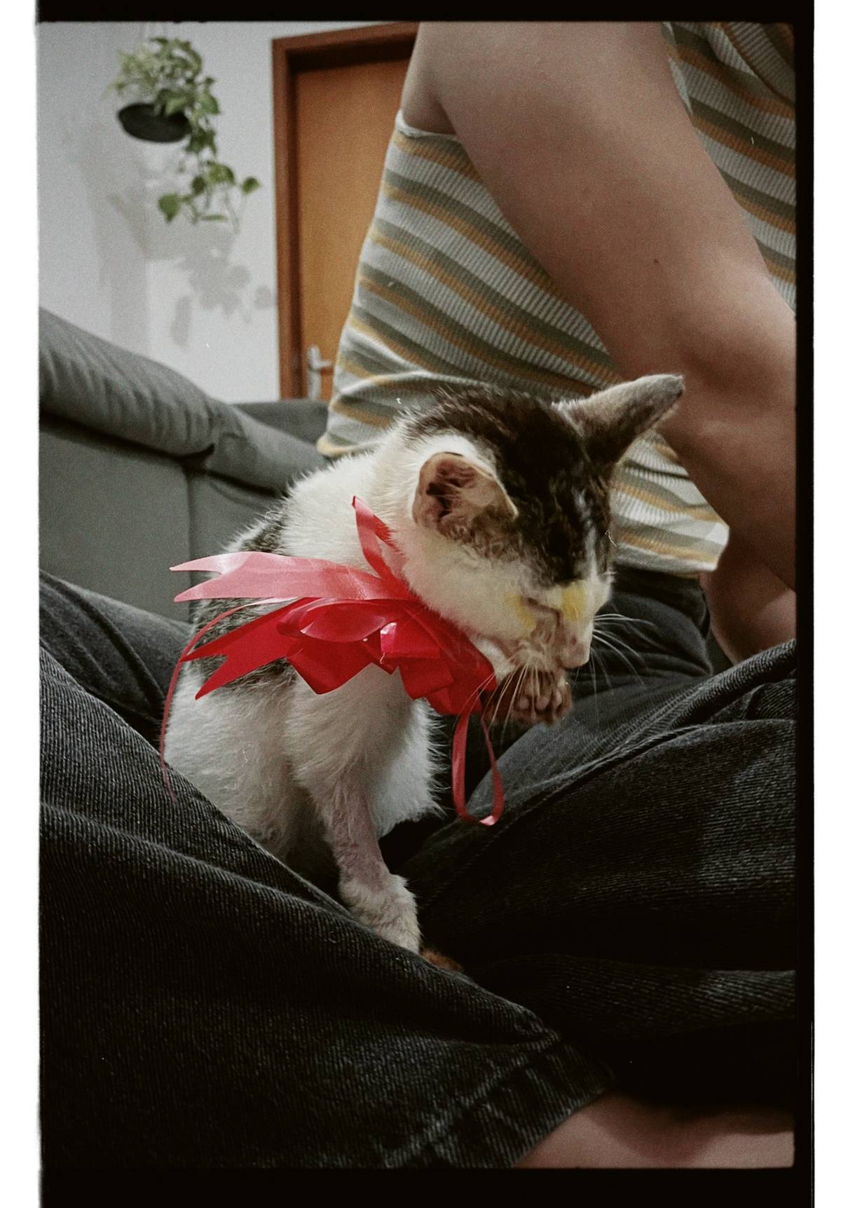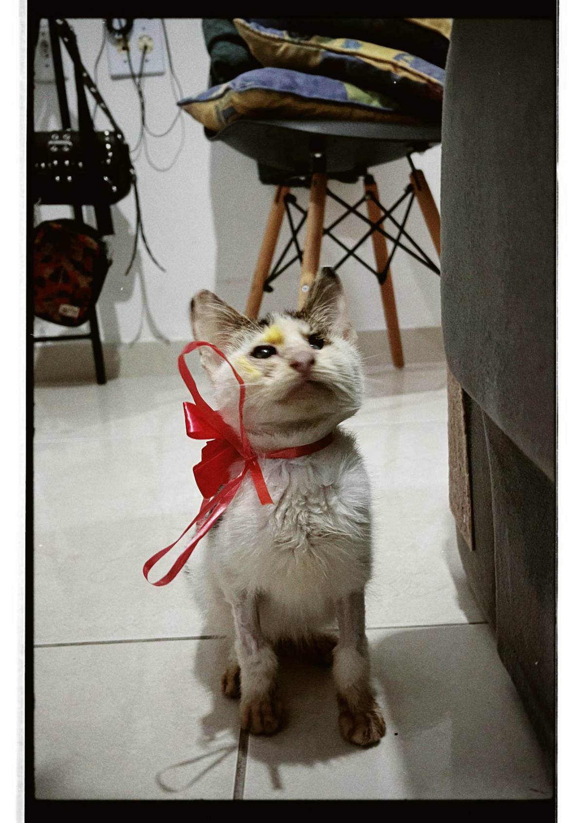 Eu e um grupo de amigos, amantes e pais de gatos, resgatamos essa gatinha filhote na rua em São Paulo. Ela estava muito debilitada, extremamente magrinha e com os olhinhos muito inflamados. Levamos imediatamente ao veterinário, mesmo sabendo que não poderíamos ficar com ela