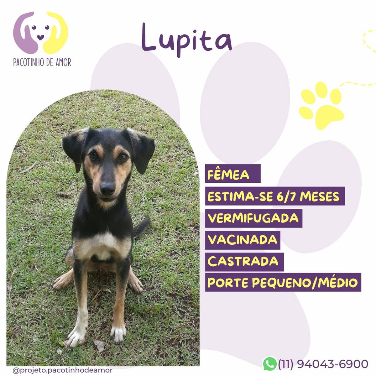 Obs.: Não reservamos animais. Não fazemos adoção por terceiros. Enviamos resposta para os perfis aprovados em até 2 dias úteis.