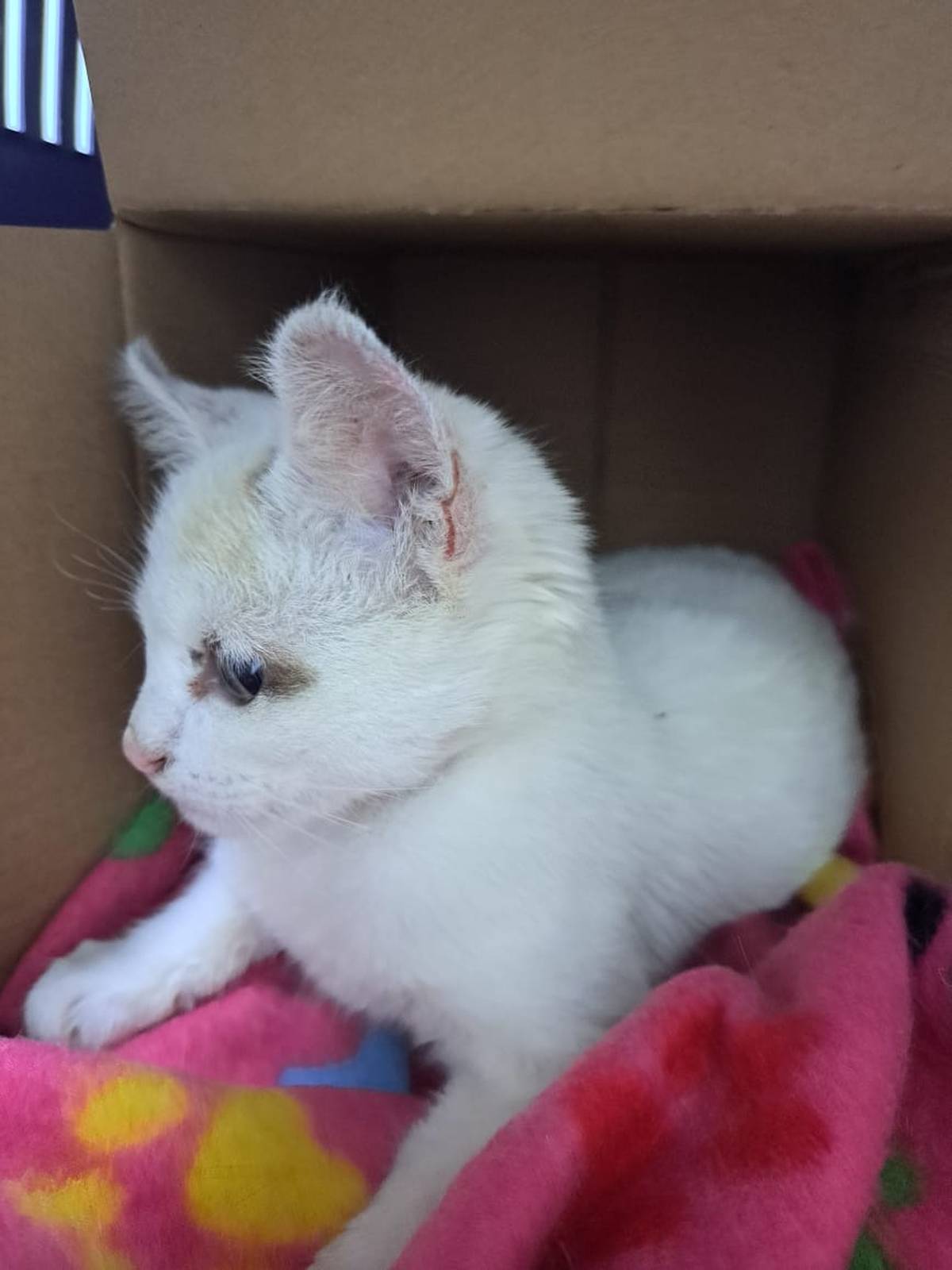 Luz , fêmea, 3/4 meses. Branca de rabo marrom