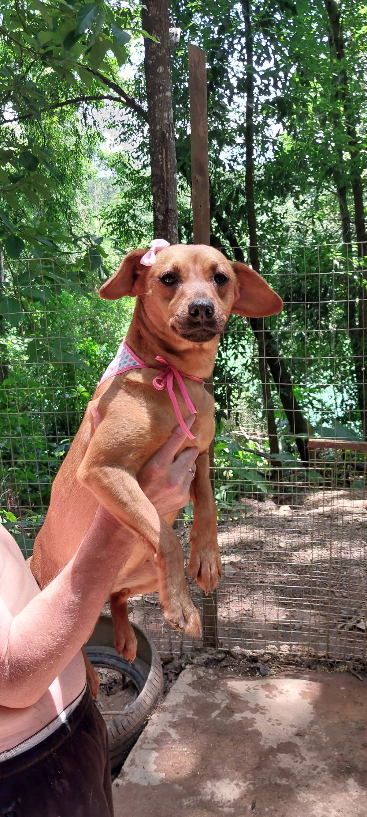 Ela tem o tamanho de um Lhasa, se dá bem com outros cães, é bem dócil e brincalhona. Procura um lar para chamar de seu 💕