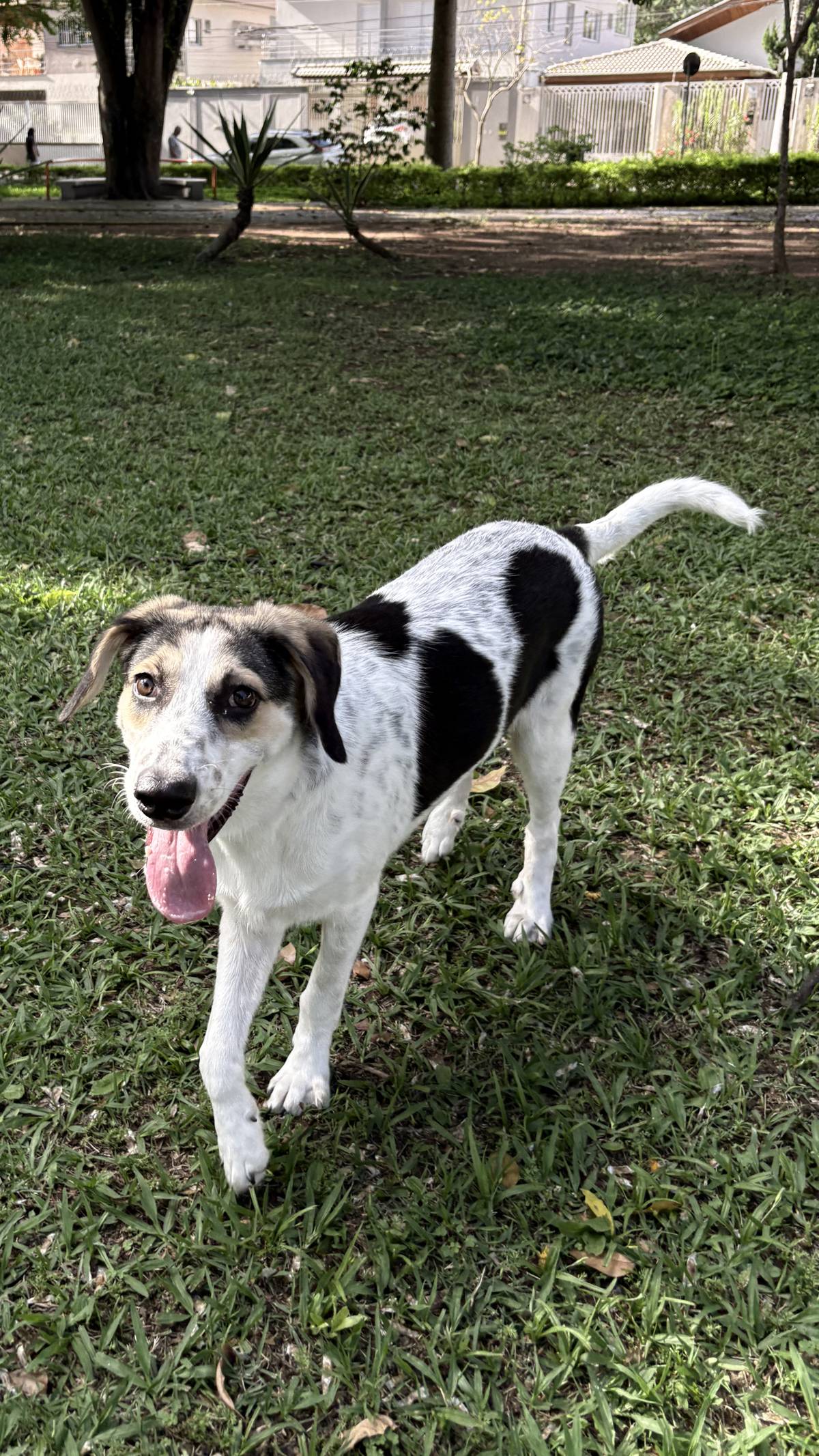 Hoje, recuperado, é carinhoso, sociável e super dócil. Tem energia para gastar e gosta muito de brincar com outros cachorros.