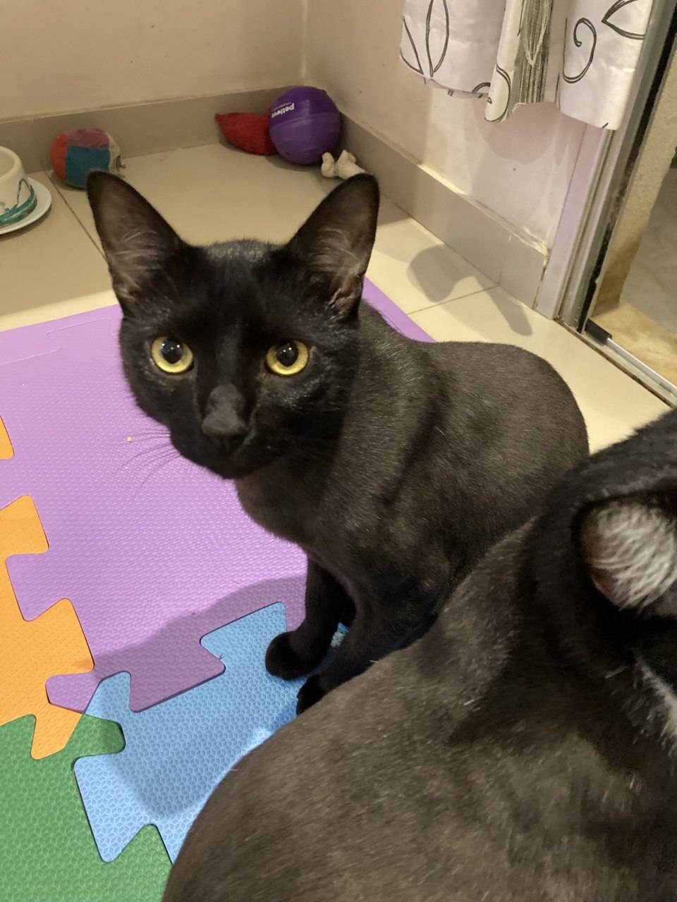 está castrado... tem muita fome e gosta de brincar com outros gatos,