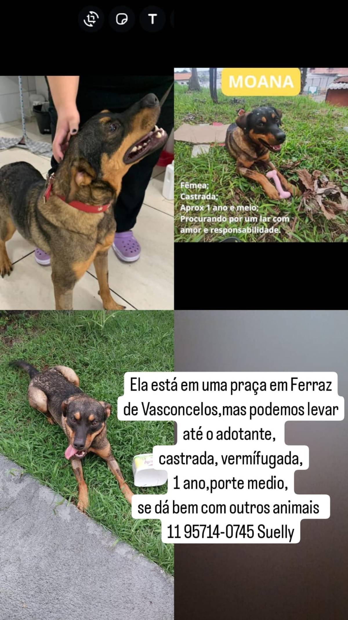 Moana, fêmea, castrada, vermifugada, está em uma praça na rua!