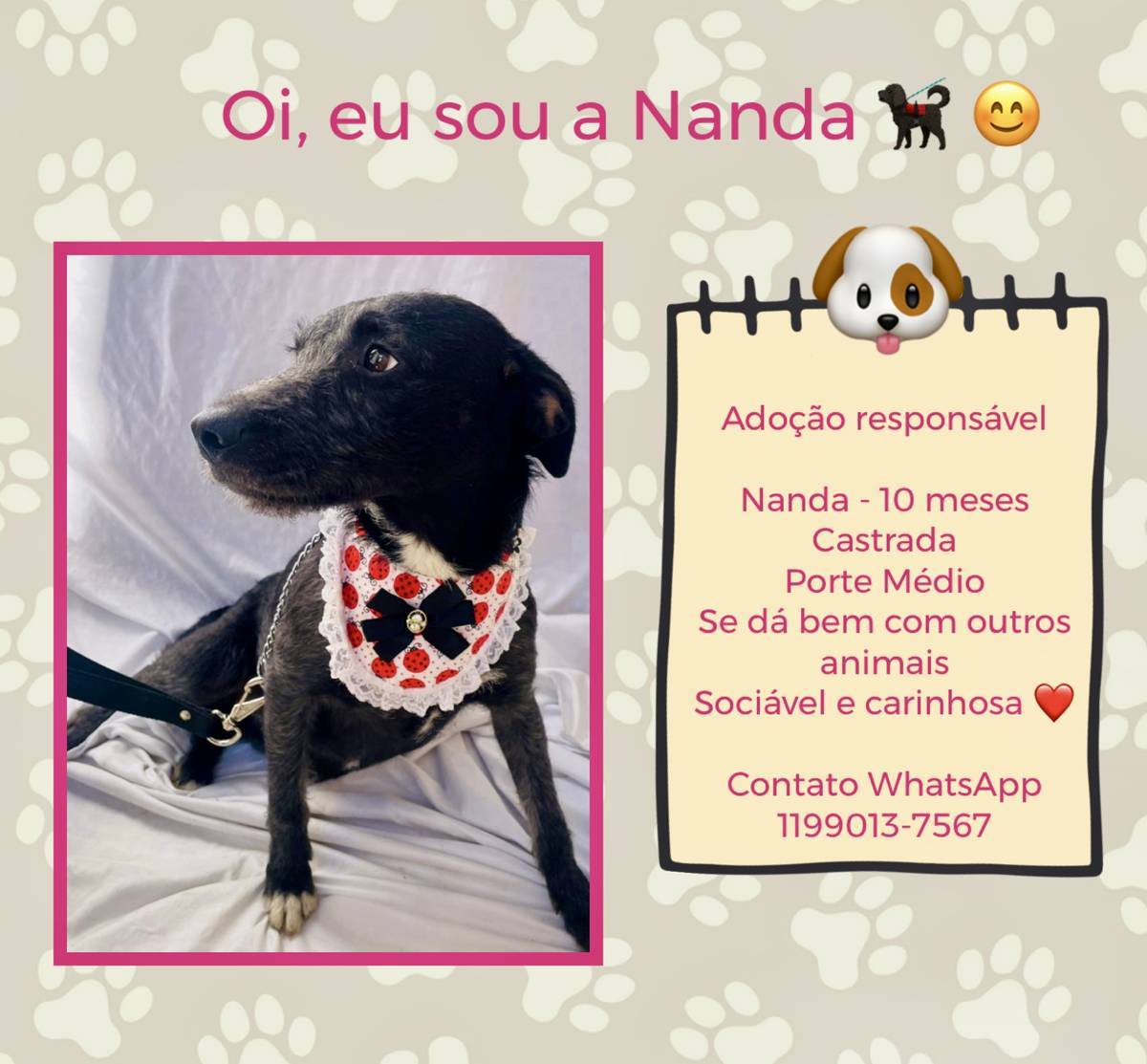 Tenho 10 meses, sou porte médio e estou em busca de um lar com muito amor e responsabilidade 🏠