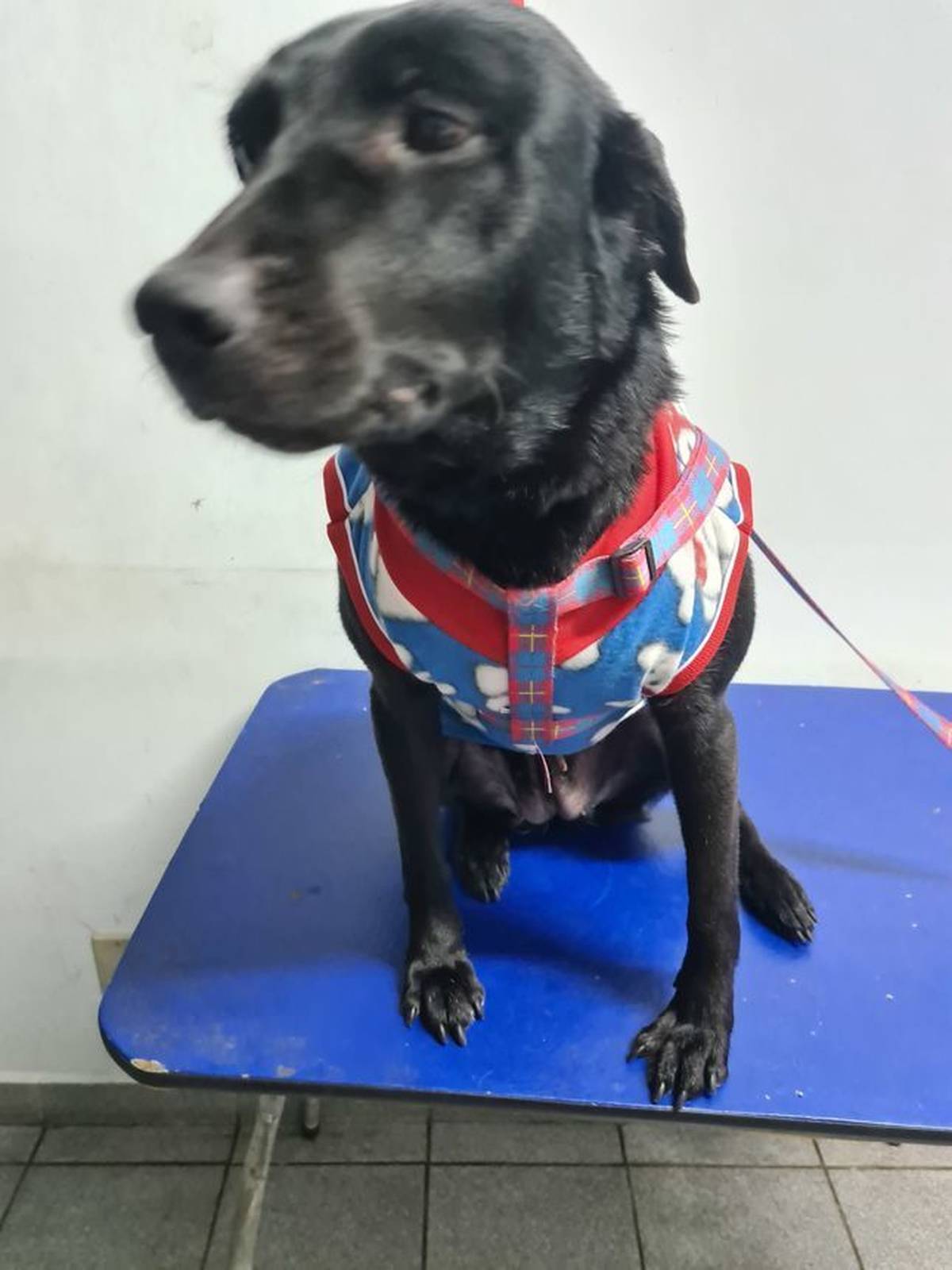 Mega dócil, uma amor de cachorra.