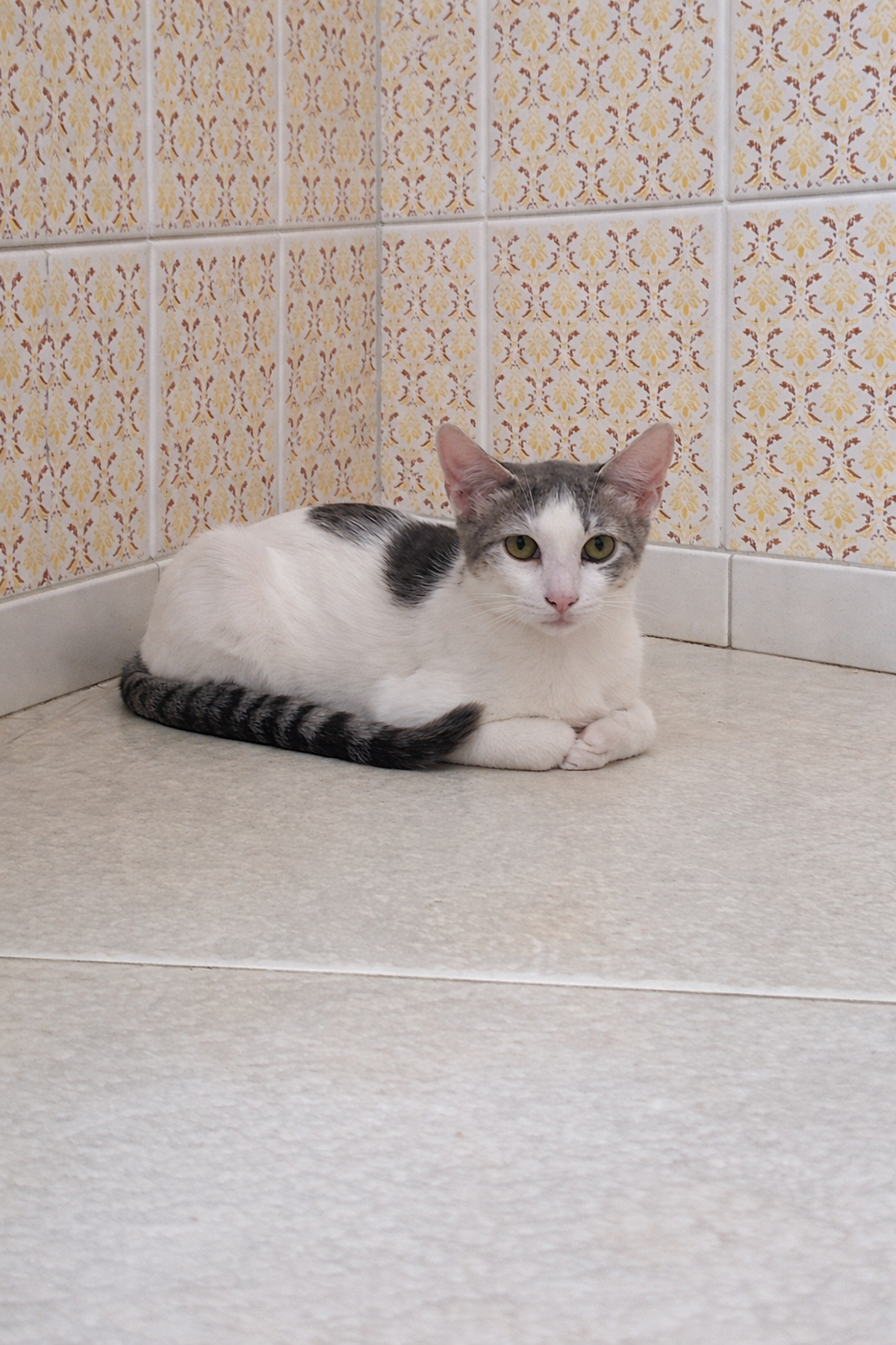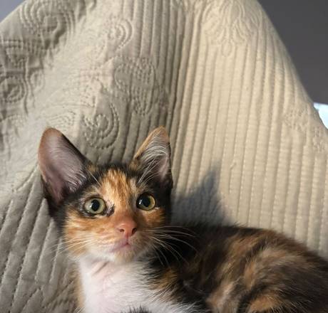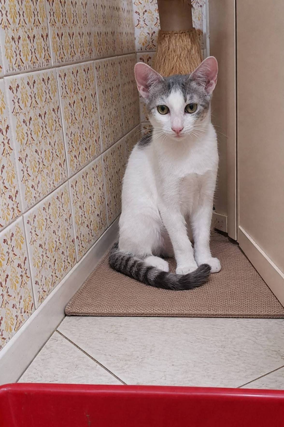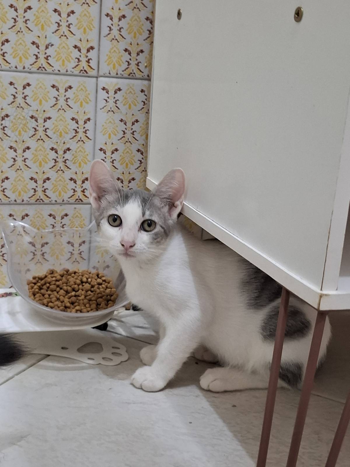 Usa caixinha de areia, come ração seca. Já vermifugada e desparasitada.