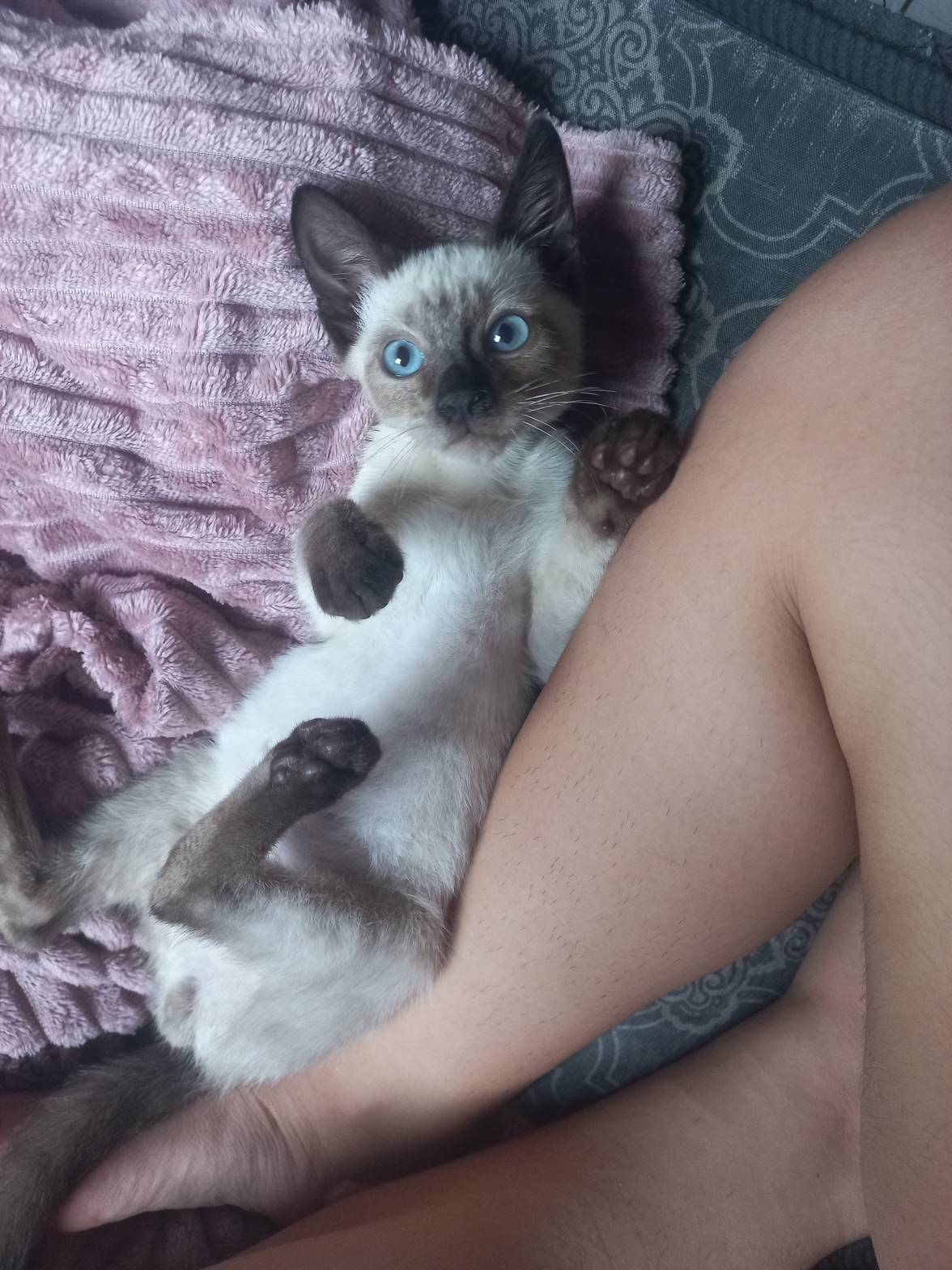 Já come ração, bebe água sozinho e usa caixinha de areia e se dá bem com outros gatinhos