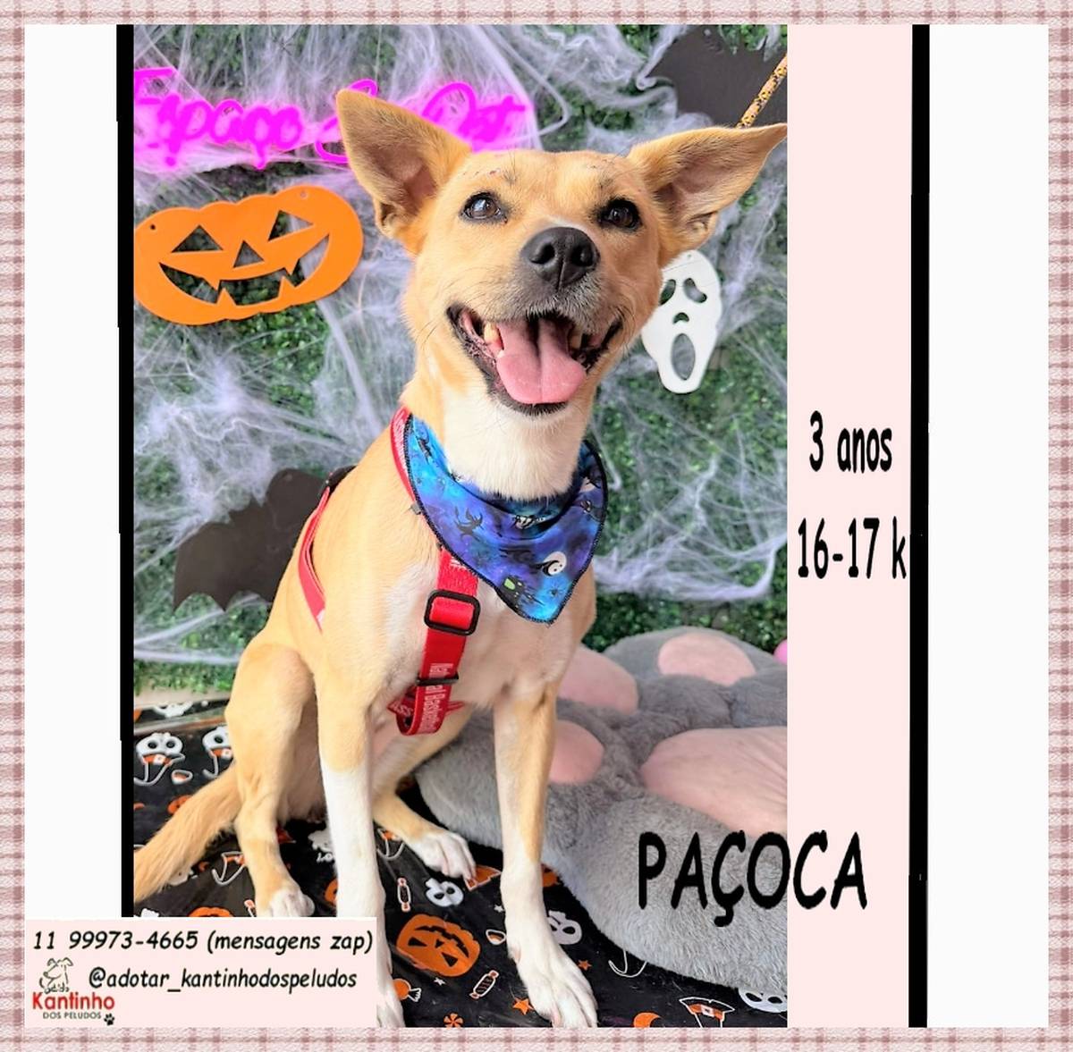 Paçoca sonha com uma família que a ame e queira dividir momentos cheios de amor, risadas e lambidas!